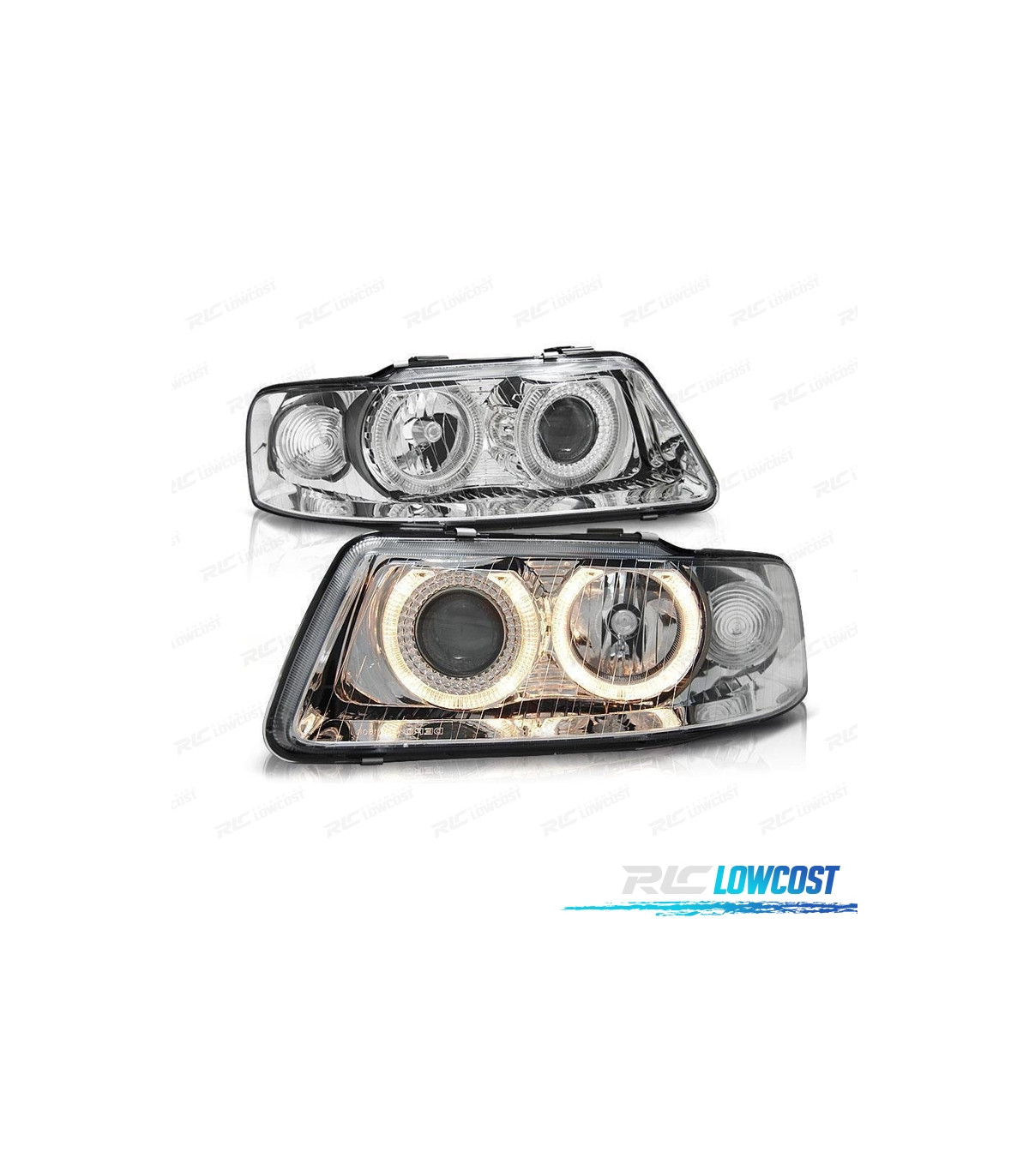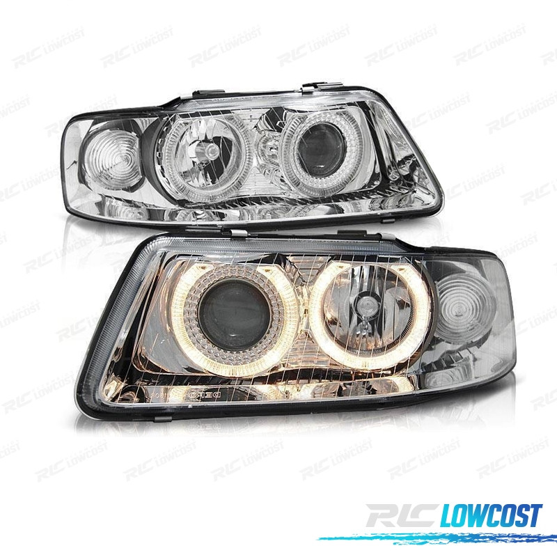 FARÓIS FRONTAIS AUDI A3 8L ANGEL EYES 9/00-3/03 FUNDO CROMADO