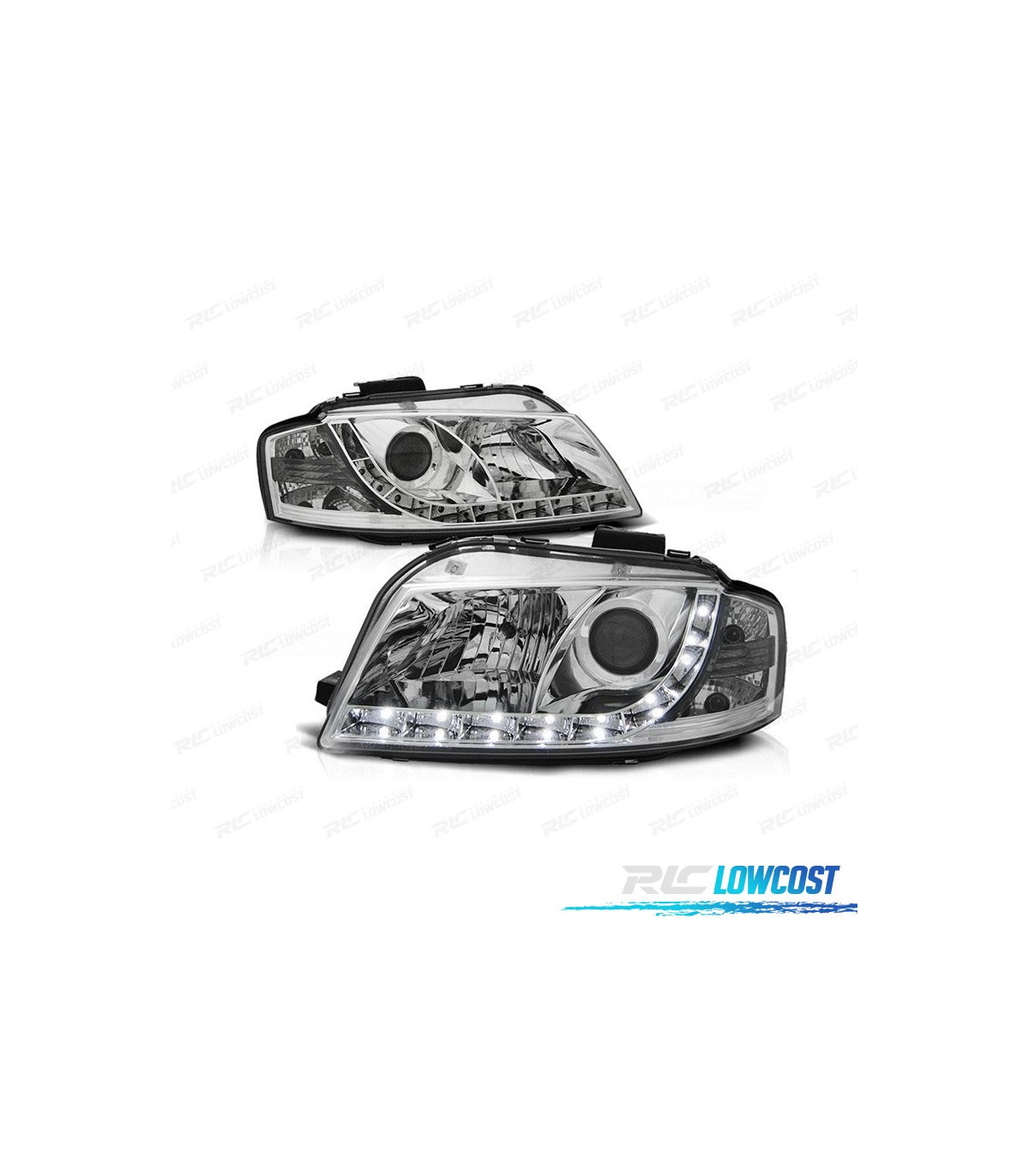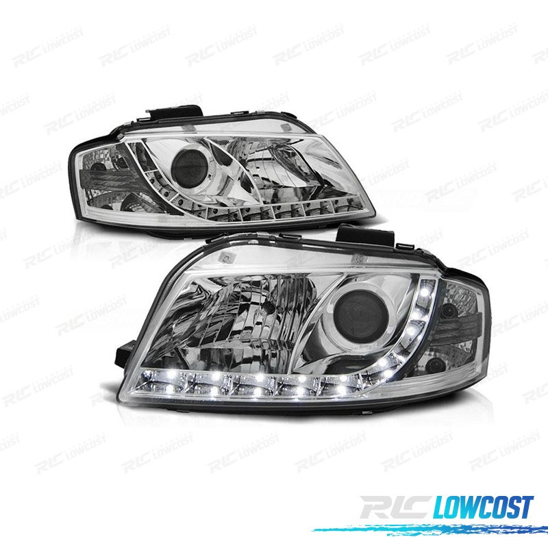 FARÓIS AUDI A3 8P 03-08 LUZ DIURNA LED FUNDO CROMADO