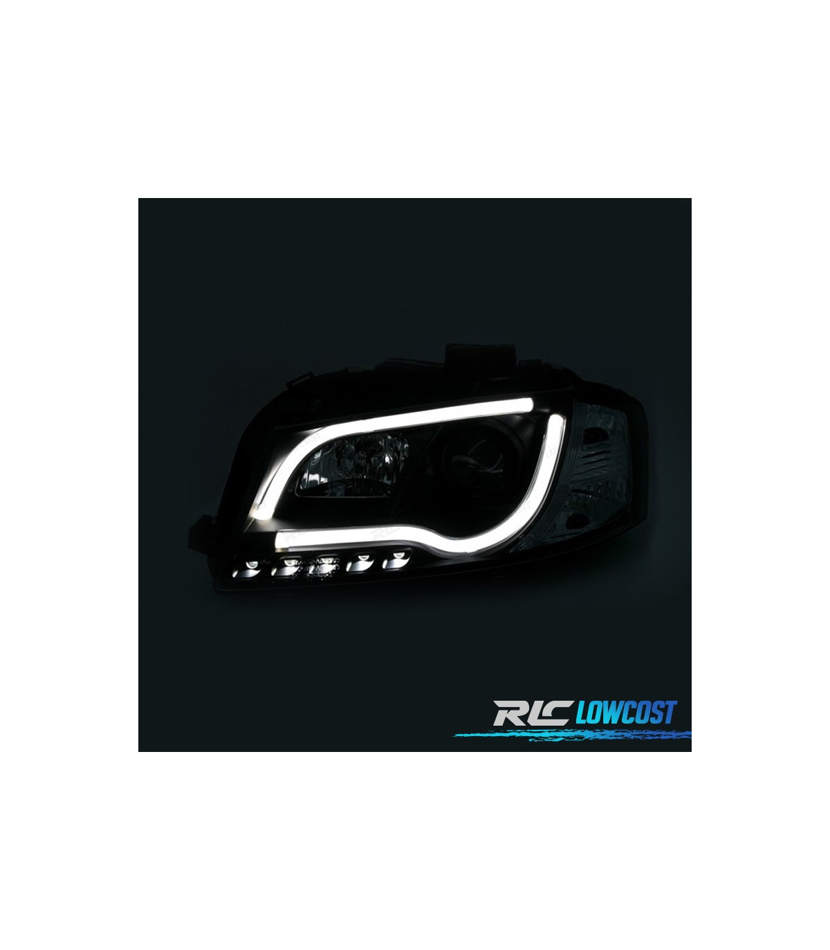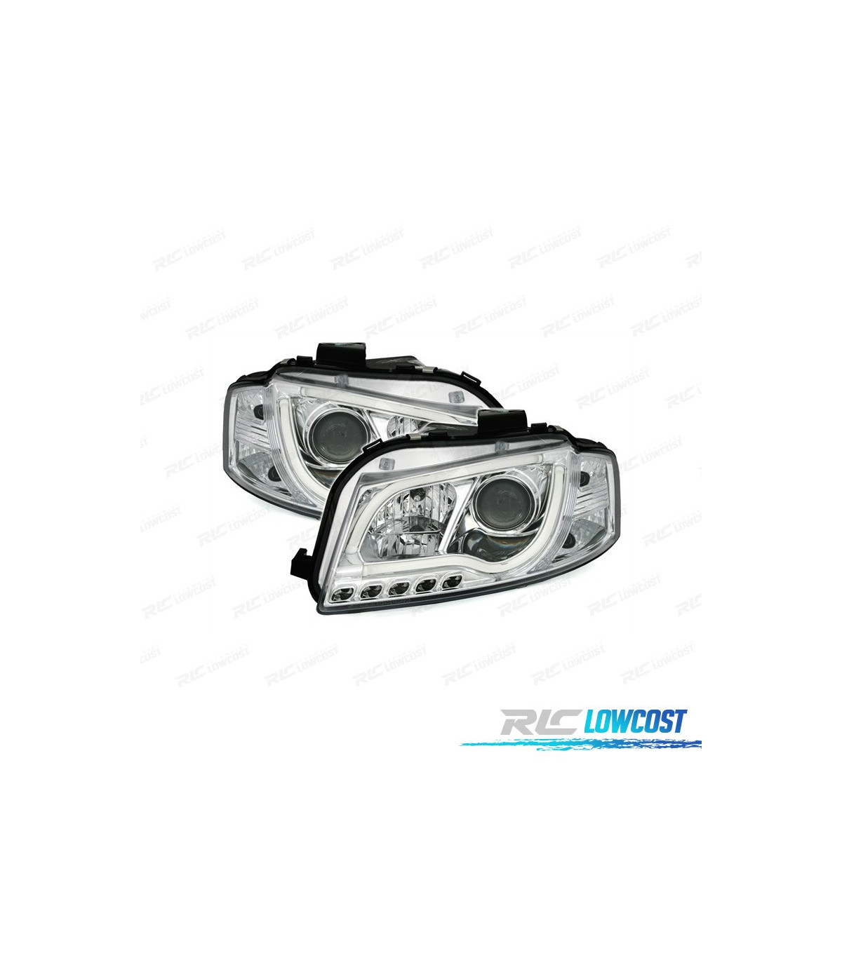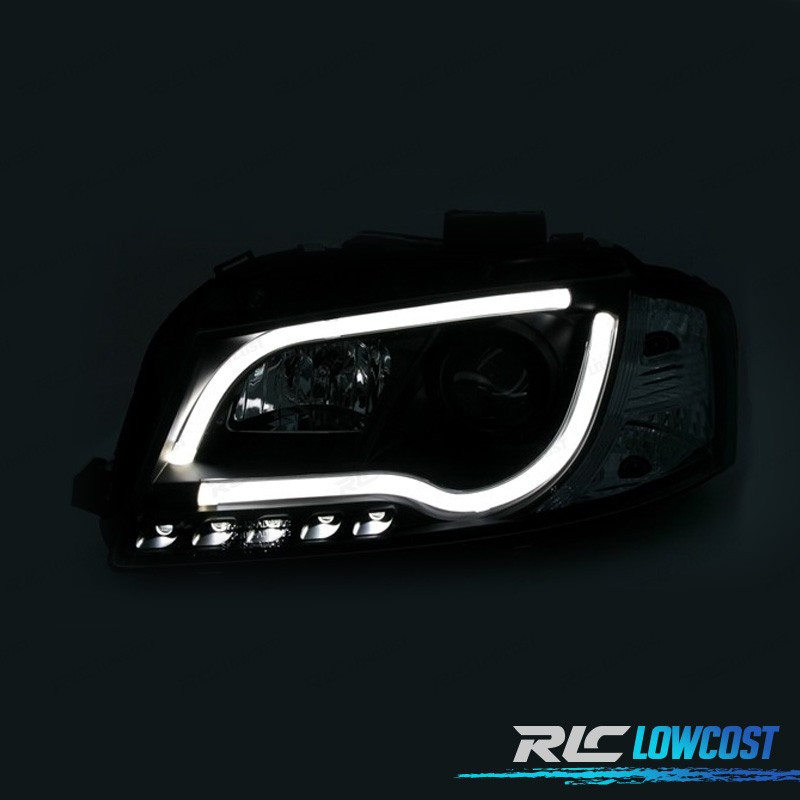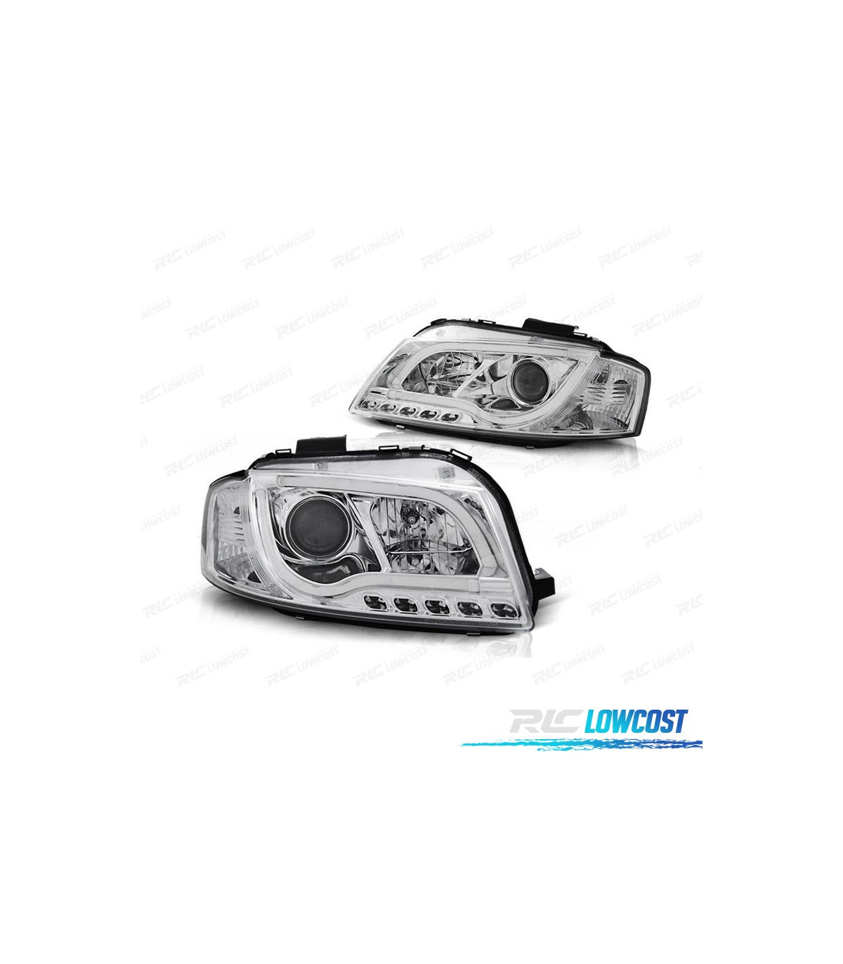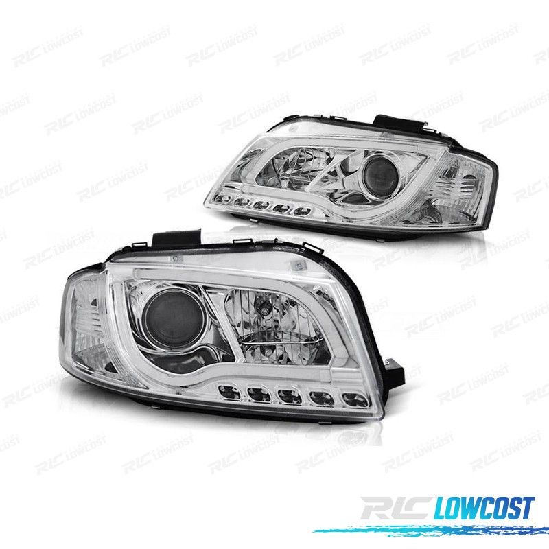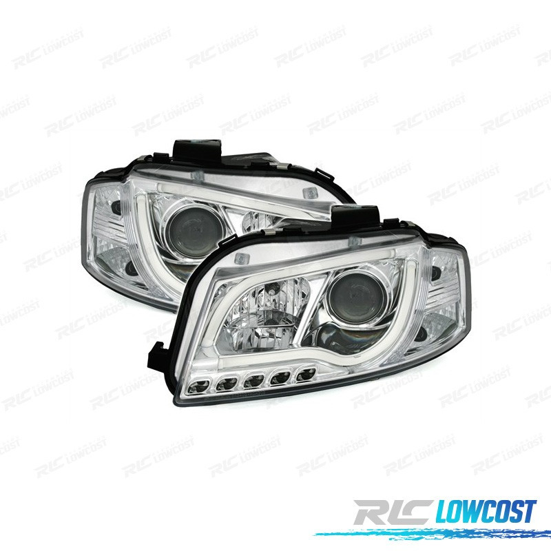 FARÓIS AUDI A3 8P 03-08 LUZ DIURNA TUBE LIGHT FUNDO CROMADO