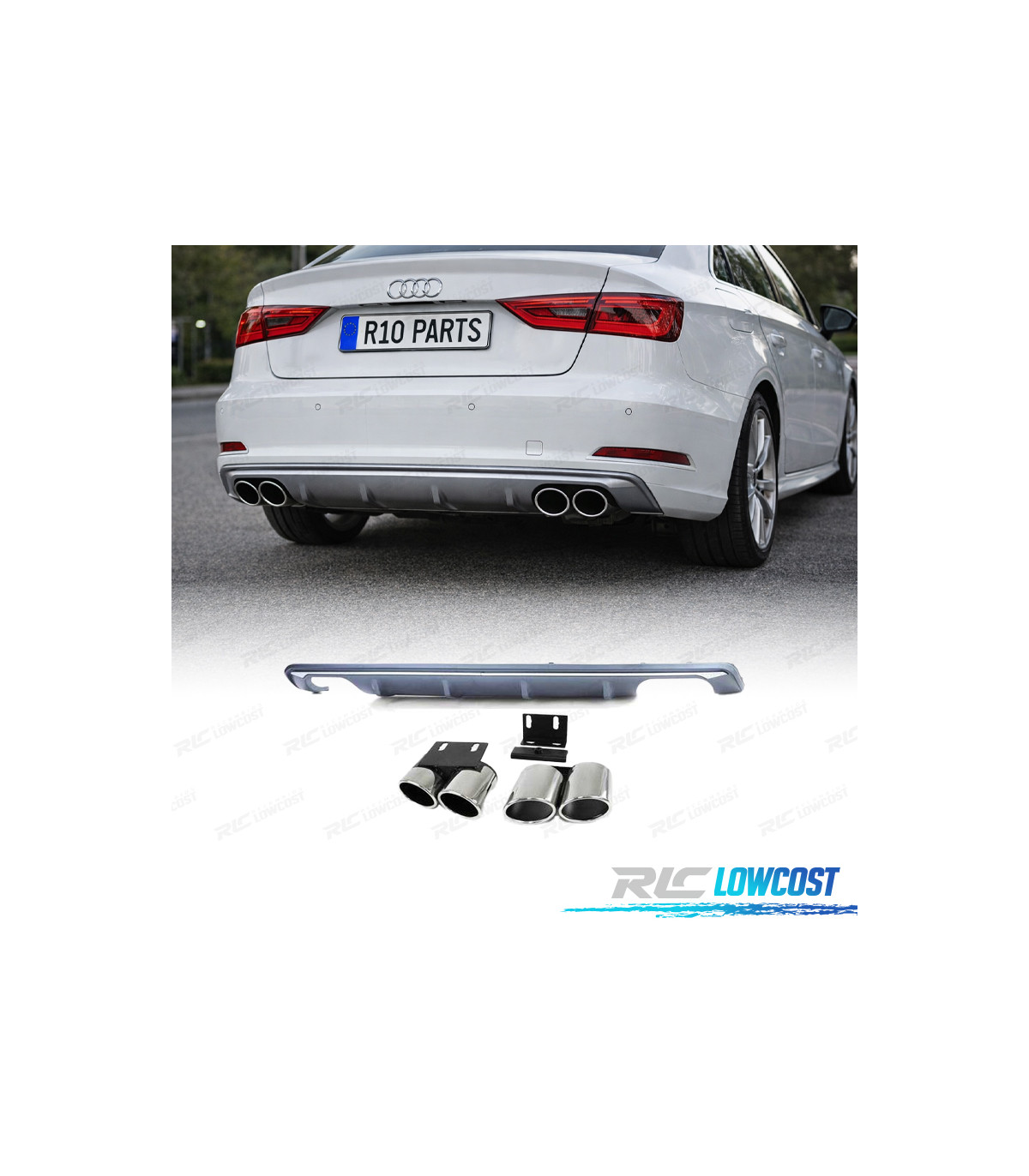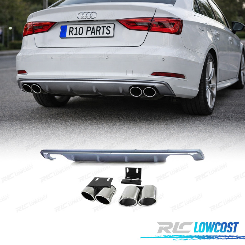 DIFUSOR TRASEIRO AUDI A3 8V BERLINA CABRIO 12-16 + PONTEIRAS ESCAPE LOOK S3