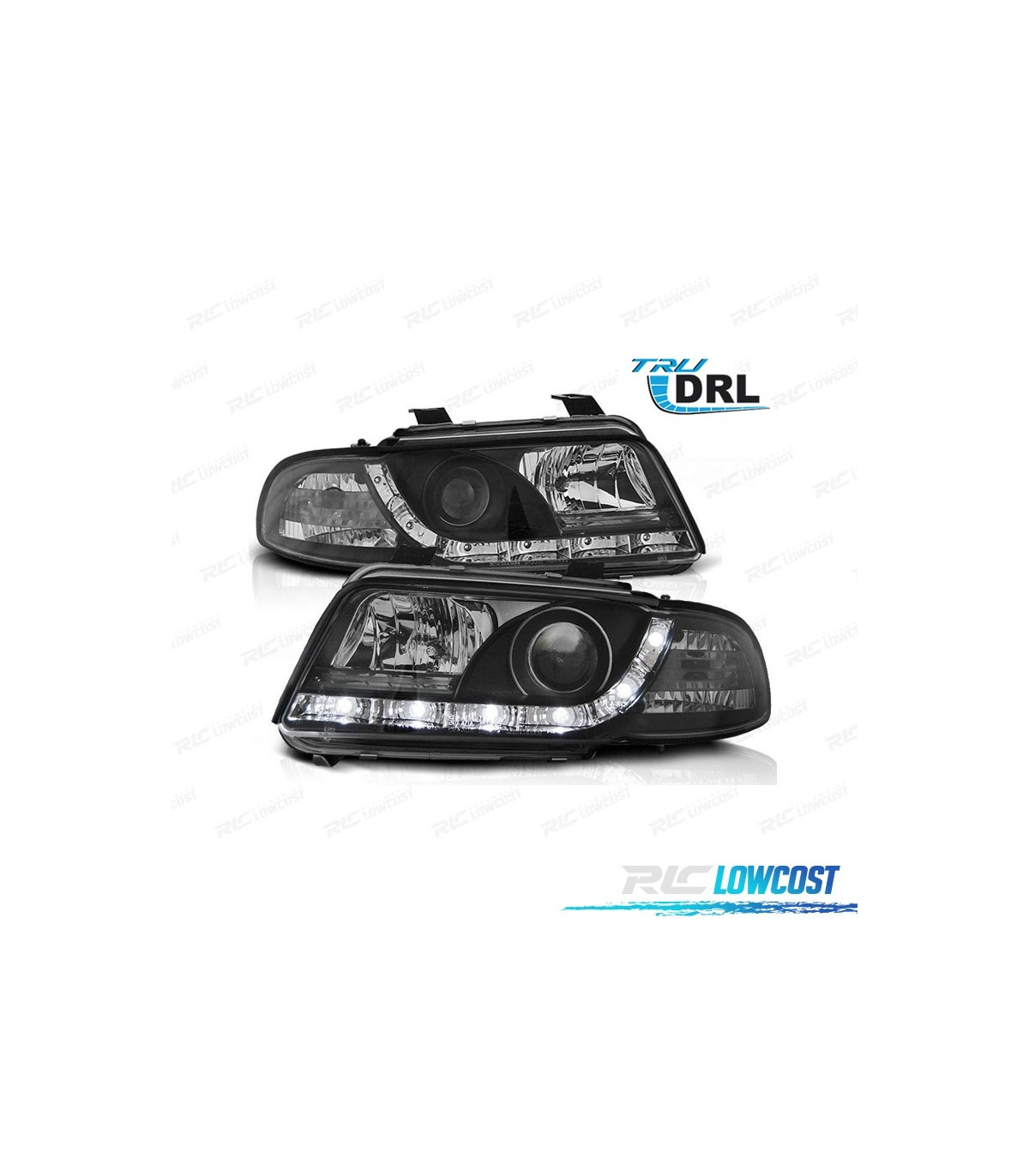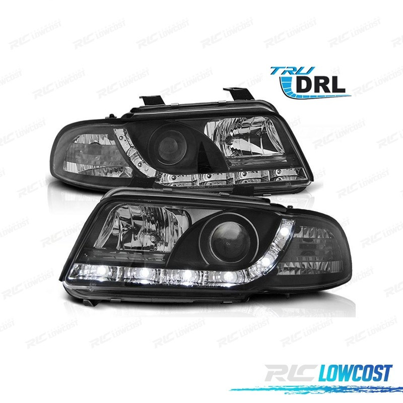 FARÓIS LUZ DIURNA AUDI A4 B5 99-01 FUNDO PRETO