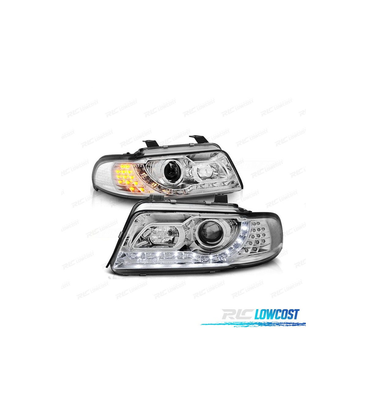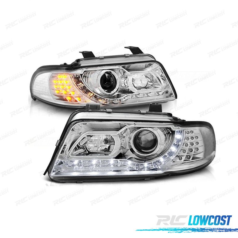 FARÓIS COM LUZ DIURNA LED AUDI A4 B5 99-00 FUNDO CROMADO