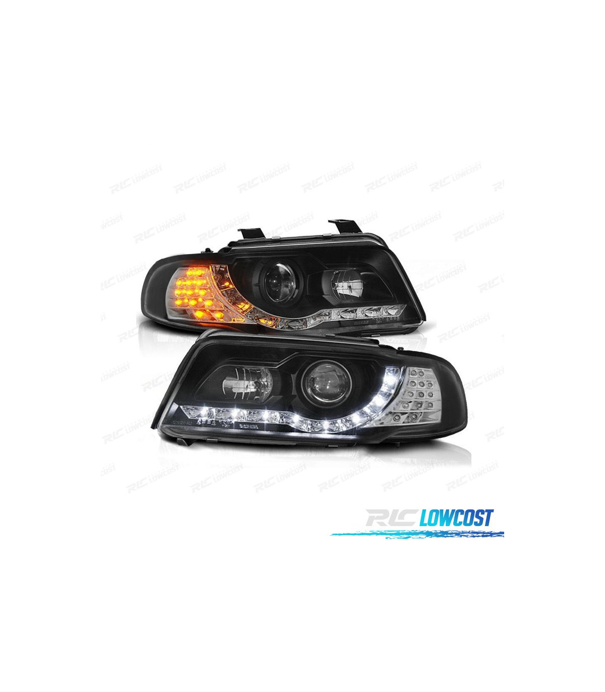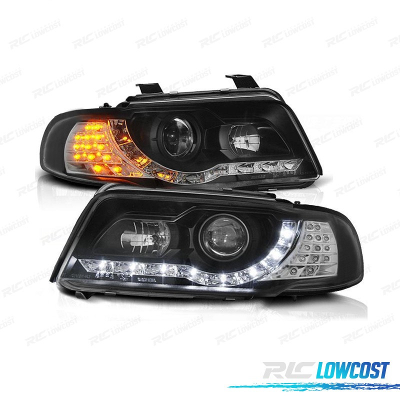 FARÓIS COM LUZ DIURNA LED AUDI A4 B5 99-01 FUNDO PRETO