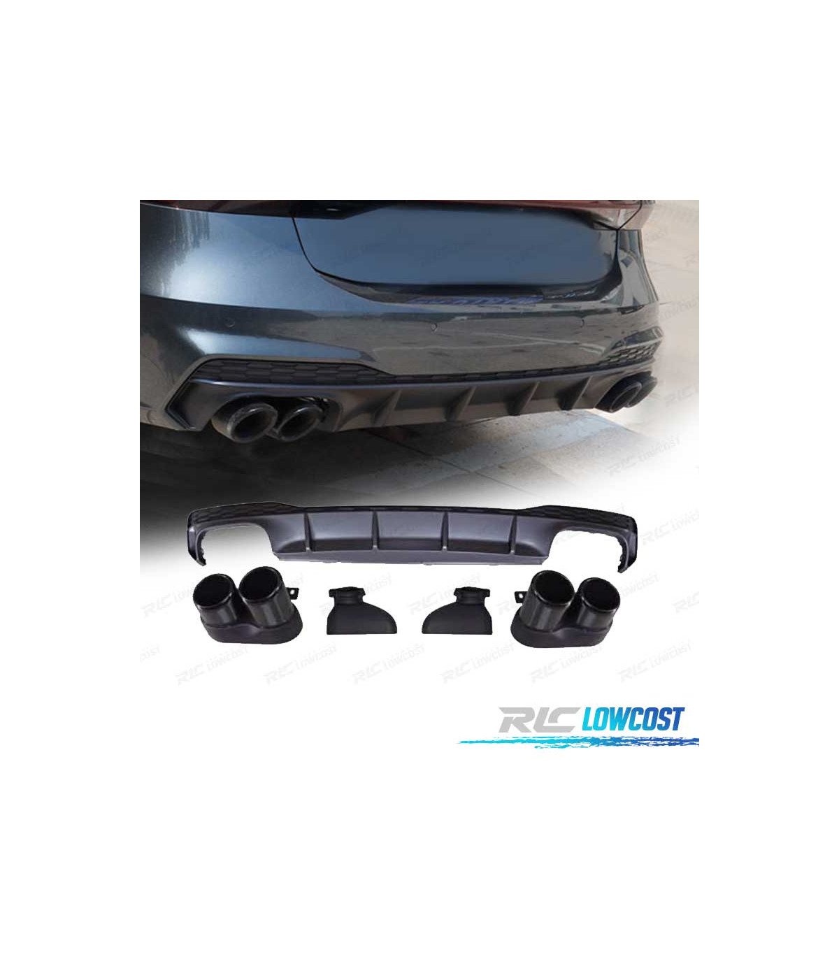 DIFUSOR AUDI A7 S LINE 19- LOOK RS7 + PONTEIRAS DE ESCAPE PRETO
