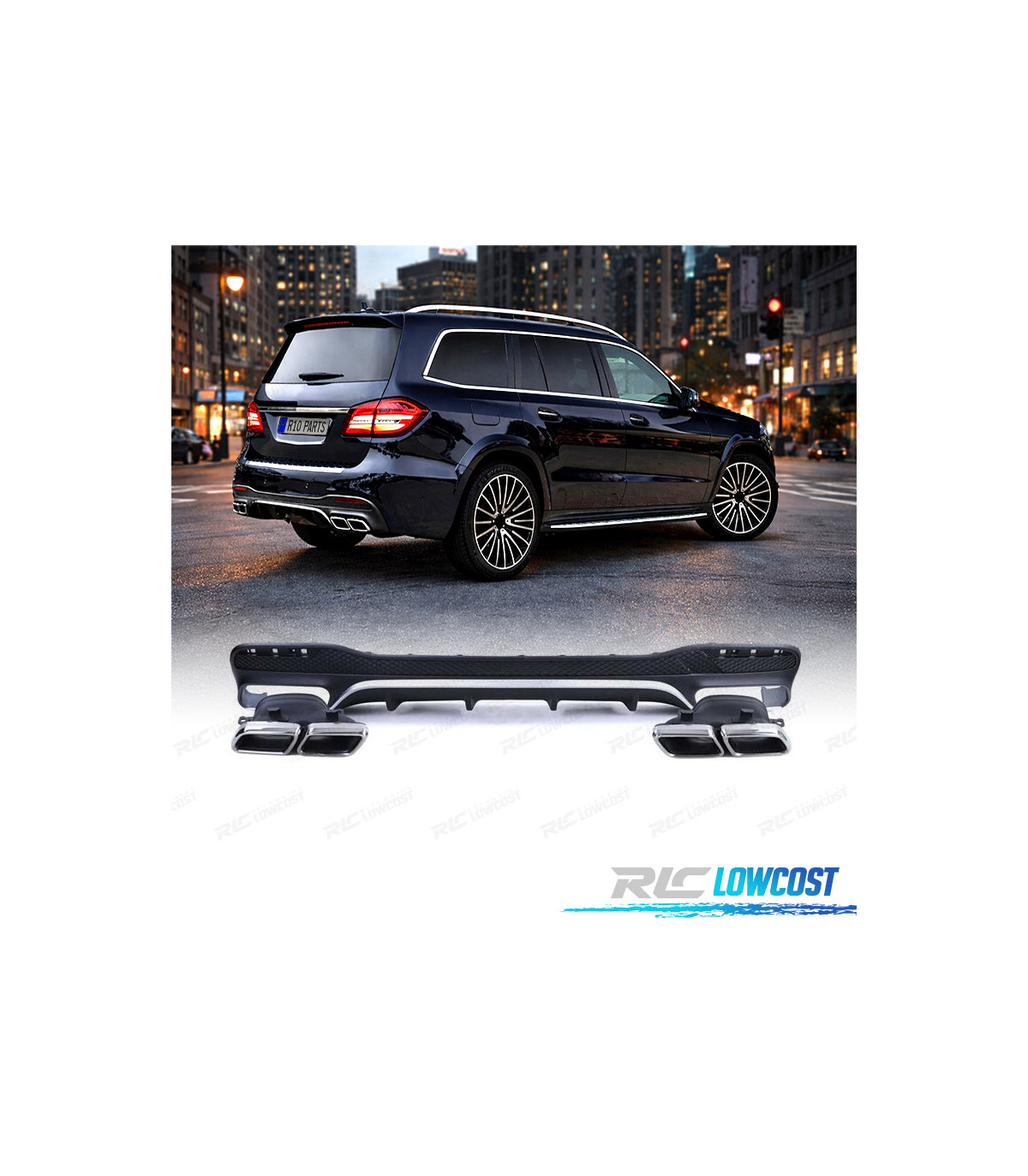DIFUSOR MERCEDES GLS X166 15-19 LOOK AMG PRETO MATE + PONTEIRAS ESCAPE ABS