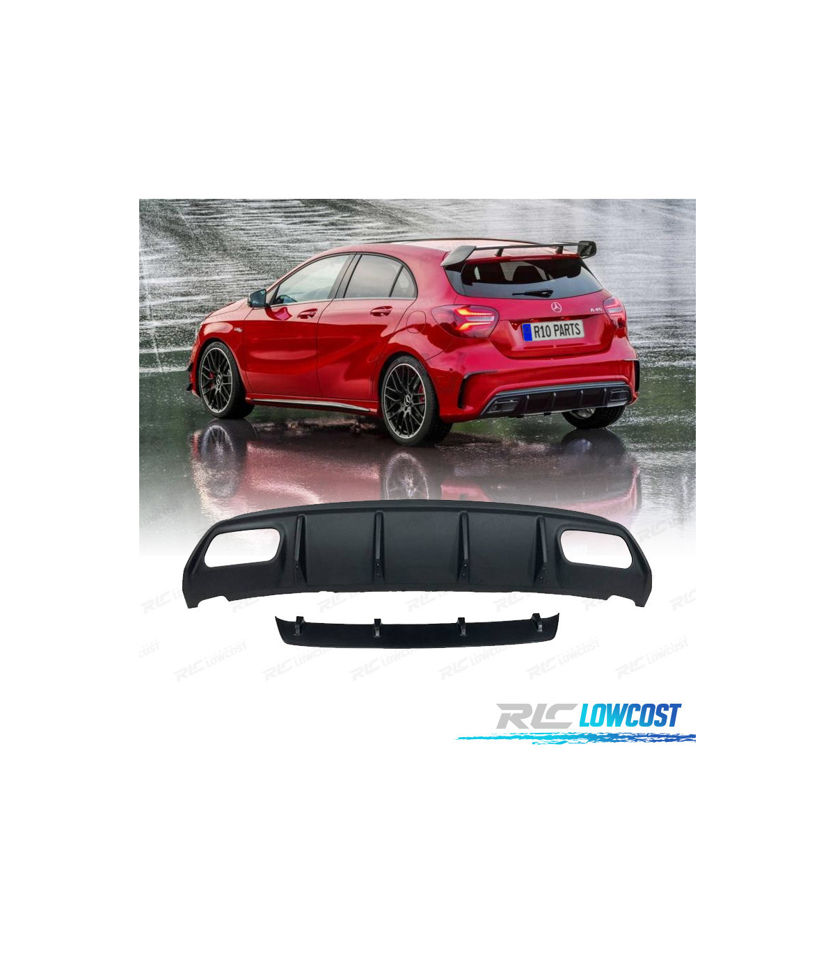 DIFUSOR TRASEIRO MERCEDES CLASE A W176 AMG 12-18 LOOK A45 PRETO MATE