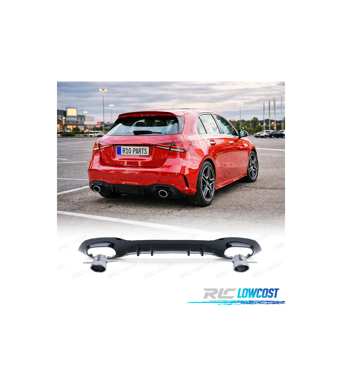 DIFUSOR MERCEDES CLASE A W177 18- A35 LOOK AMG PRETO BRILHANTE + PONTEIRAS ESCAPE