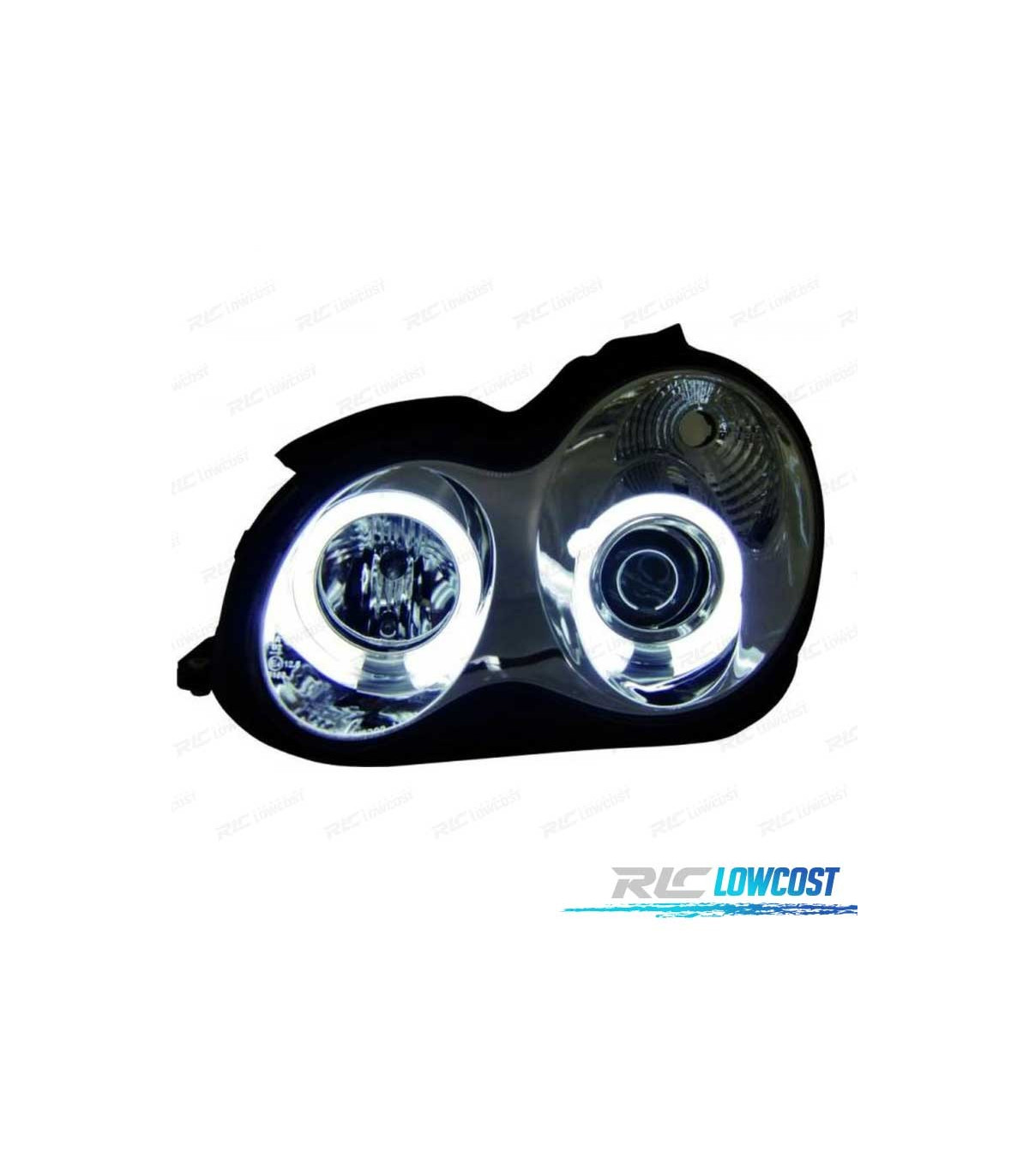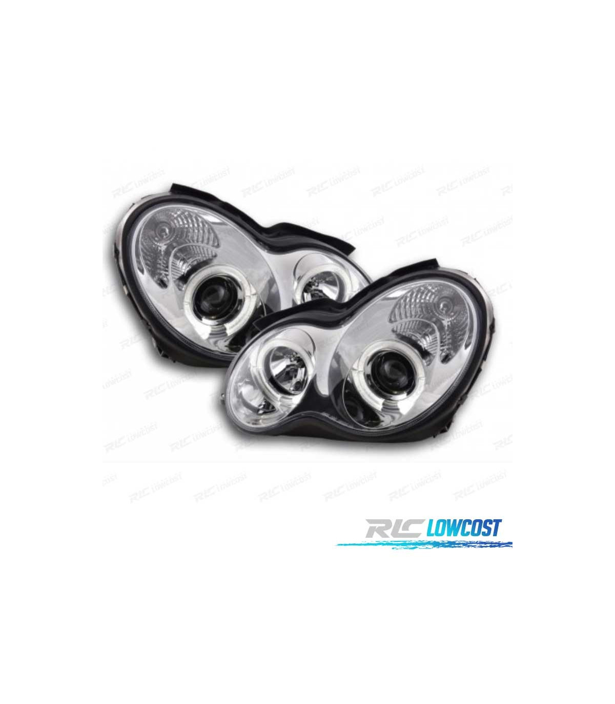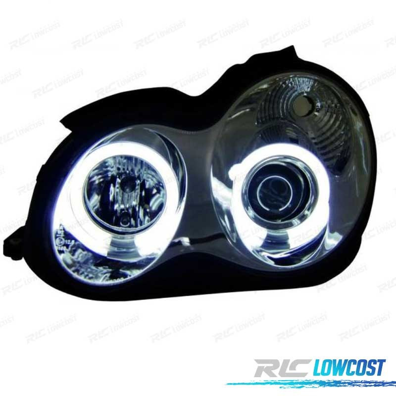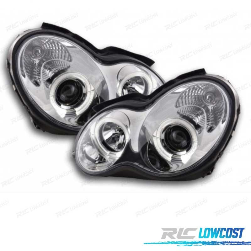 FARÓIS ANGEL EYES CCFL MERCEDES C W203 00-07 FUNDO CROMADO
