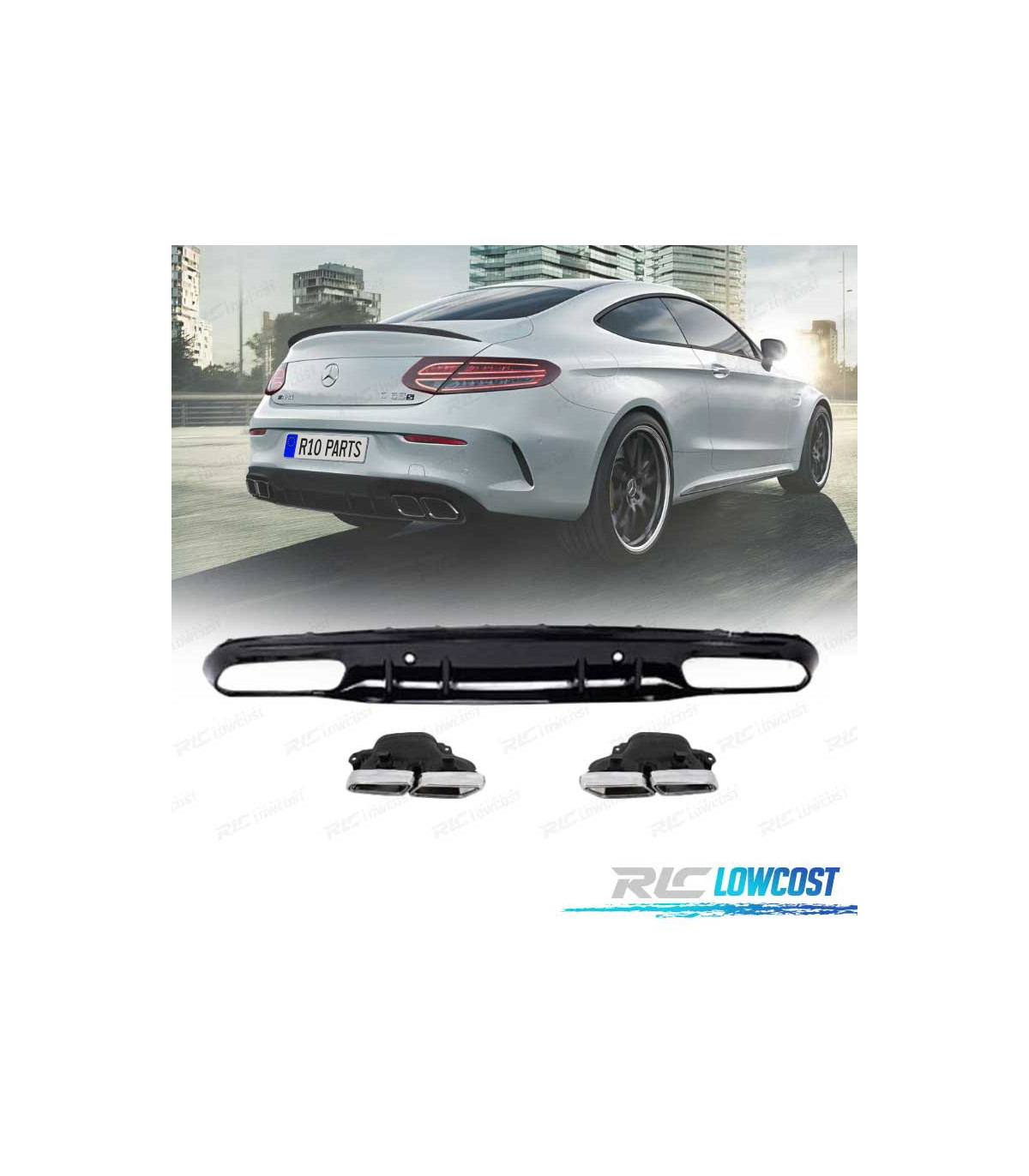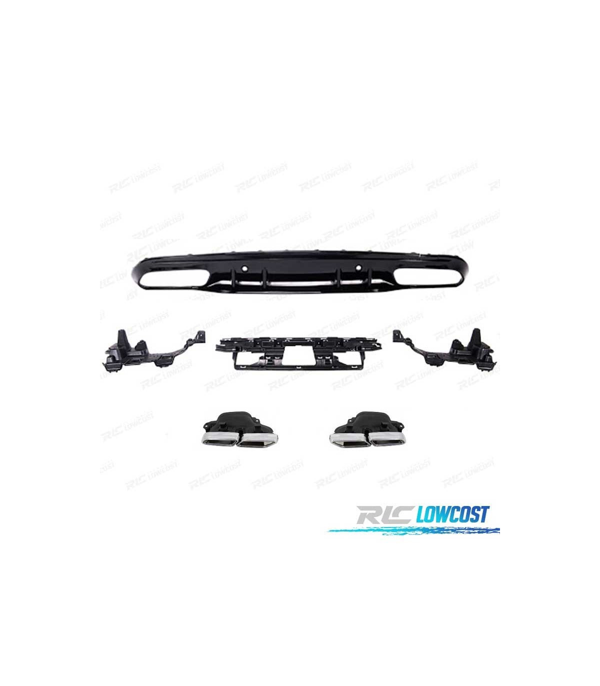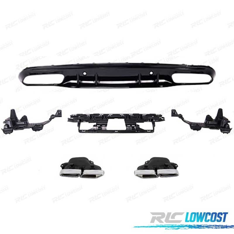 DIFUSOR TRASEIRO MERCEDES CLASSE C COUPÉ AMG 14-18 PRETO BRILHANTE + PONTEIRAS ESCAPE
