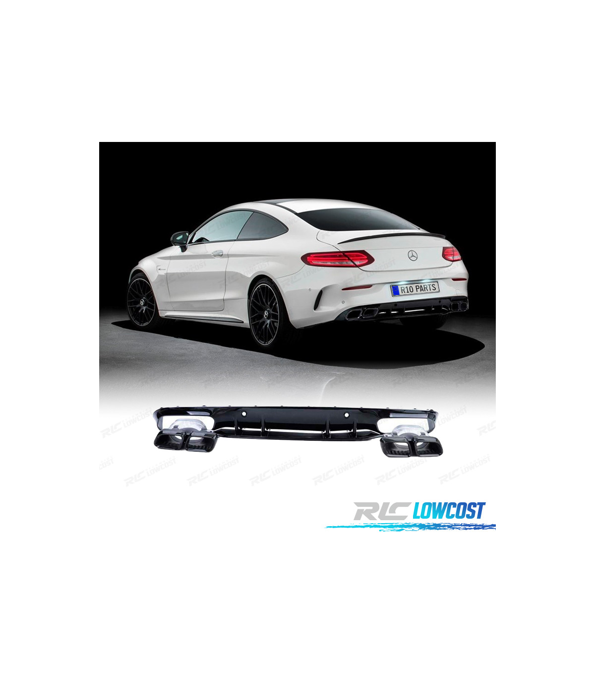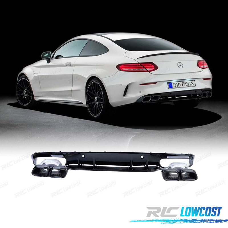 DIFUSOR MERCEDES CLASE C C205 COUPÉ 15-18 LOOK AMG C63 PRETO BRILHANTE + PONTAS DE ESCAPE PRETAS