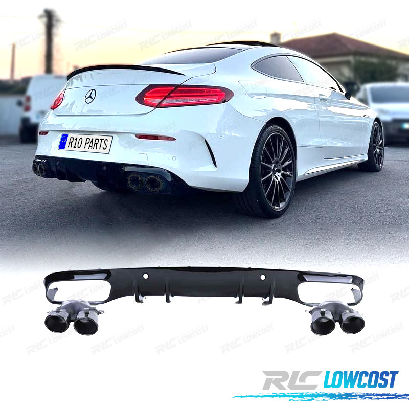 DIFUSOR MERCEDES CLASE C C205 COUPÉ 14-18 LOOK AMG PDC + PONTEIRAS DE ESCAPE PRETAS