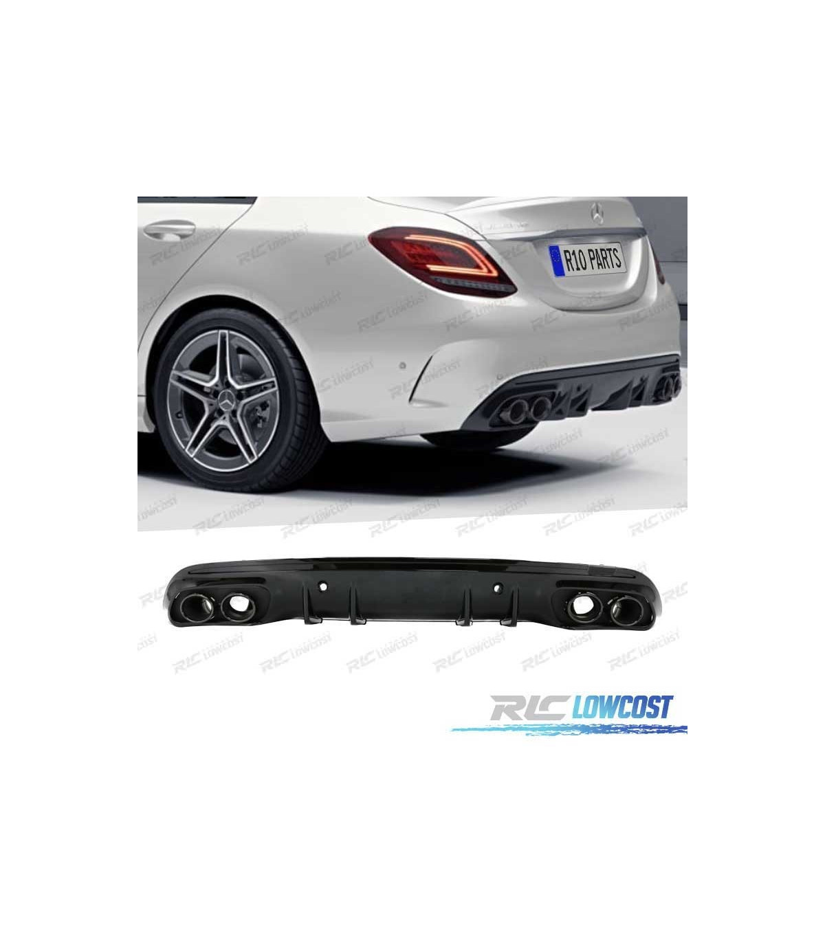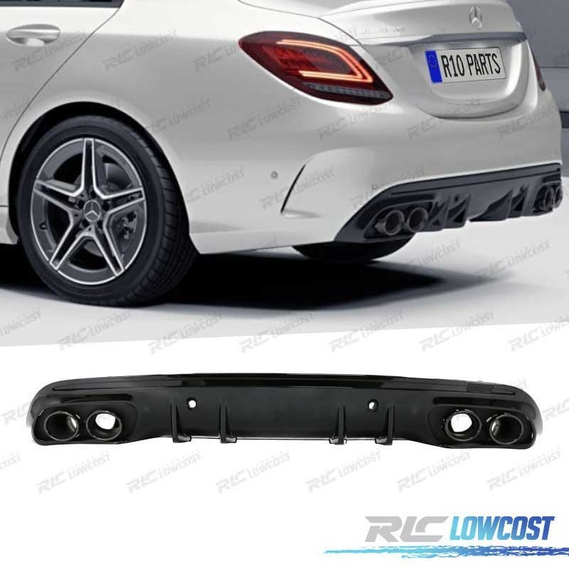 DIFUSOR TRASEIRO MERCEDES CLASE C W205 SEDAN 14-20 C43 AMG PDC + PONTEIRAS ESCAPE PRETO
