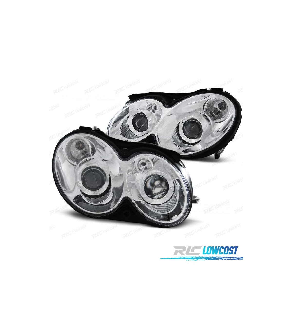 FARÓIS MERCEDES CLASSE CLK W209 02-09 LUPA FUNDO CROMADO