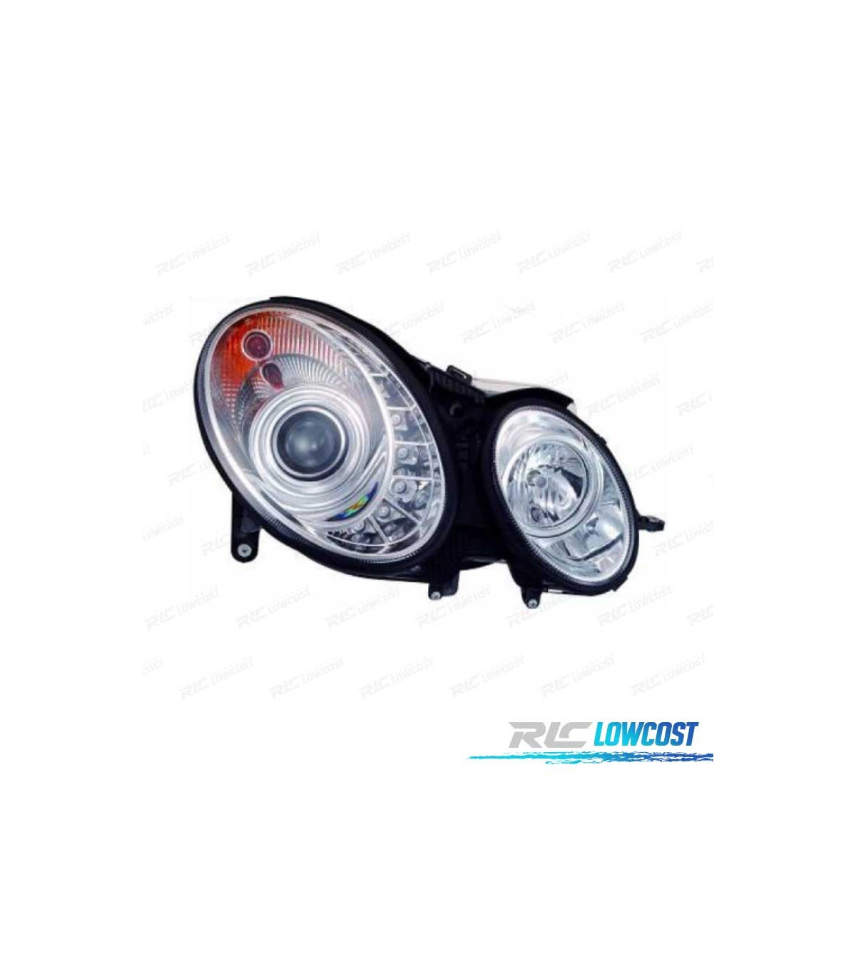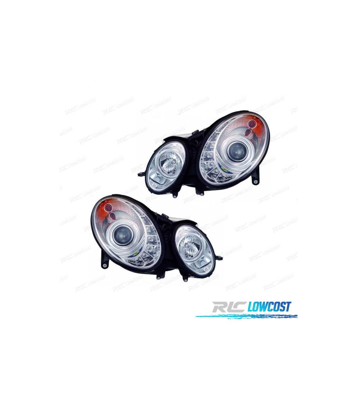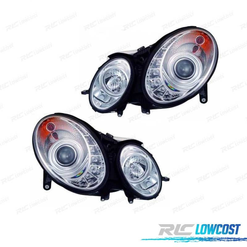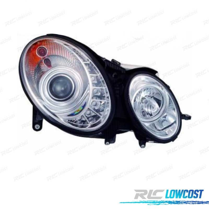 FARÓIS MERCEDES CLASSE E W211 02-06 LUZ DIURNA FUNDO CROMADO