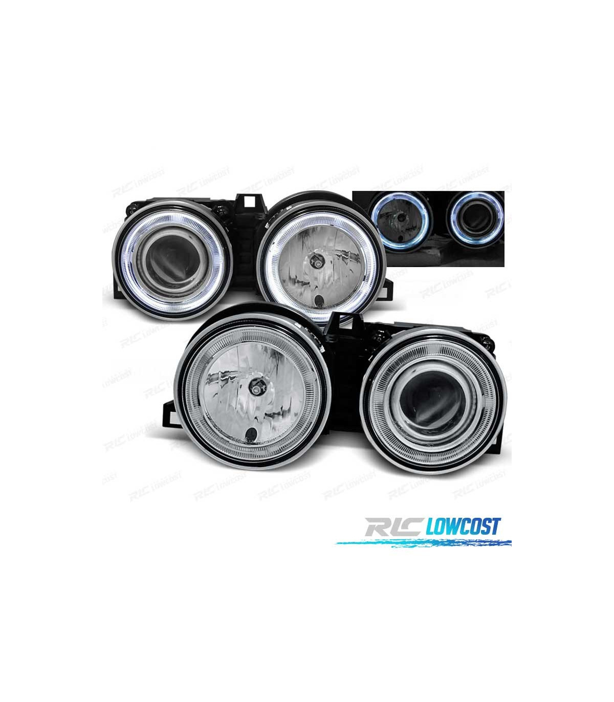 FARÓIS OPTICAS BMW E30 82-94 OLHOS DE ANJO CROMADOS CCFL