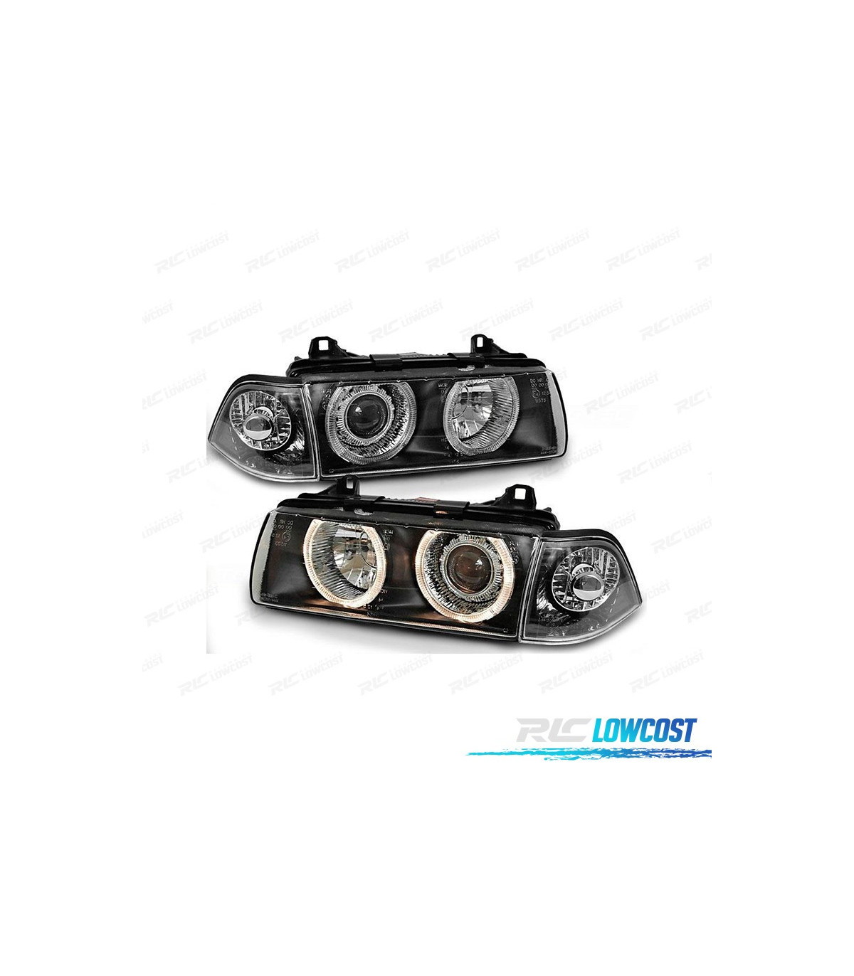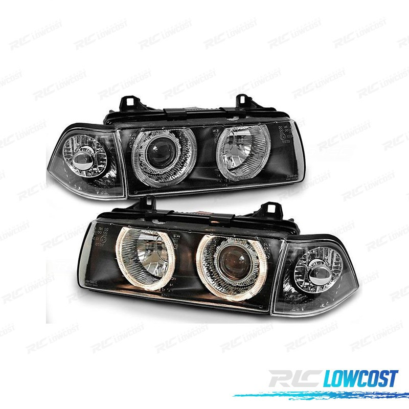 FARÓIS ANGEL EYES BMW E36 BERLINA 90-99 FUNDO PRETO