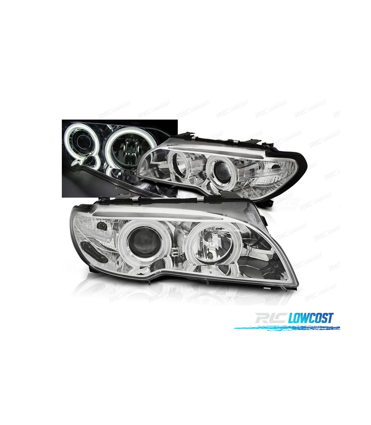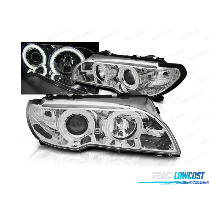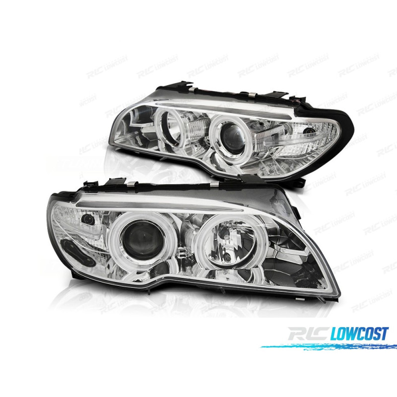 FARÓIS BMW E46 COUPÉ CABRIO 03-06 ANGEL EYES CCFL CROMADOS