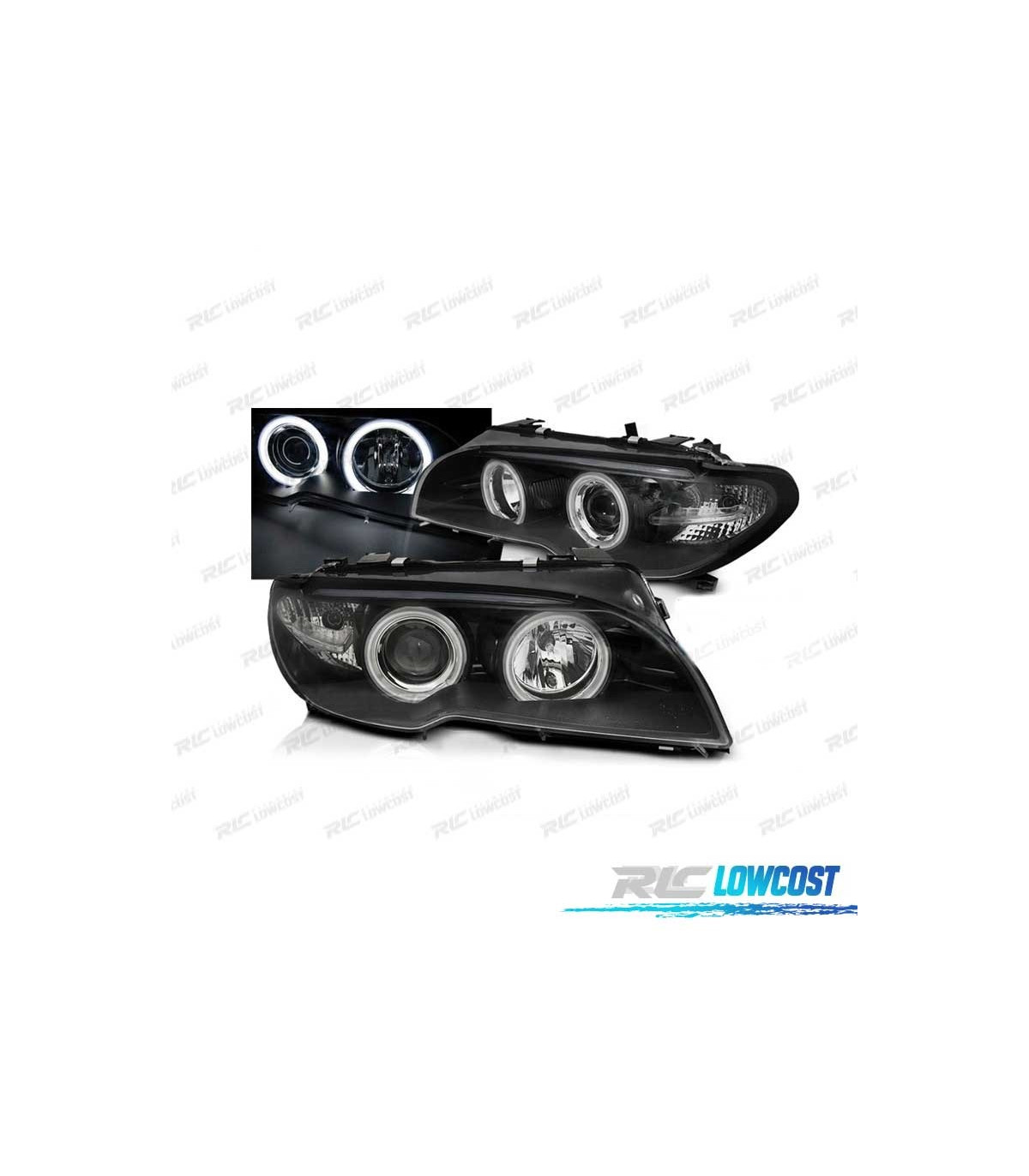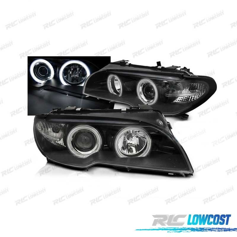 FARÓIS BMW E46 03-06 ANGEL EYES CCFL FUNDO NEGRO