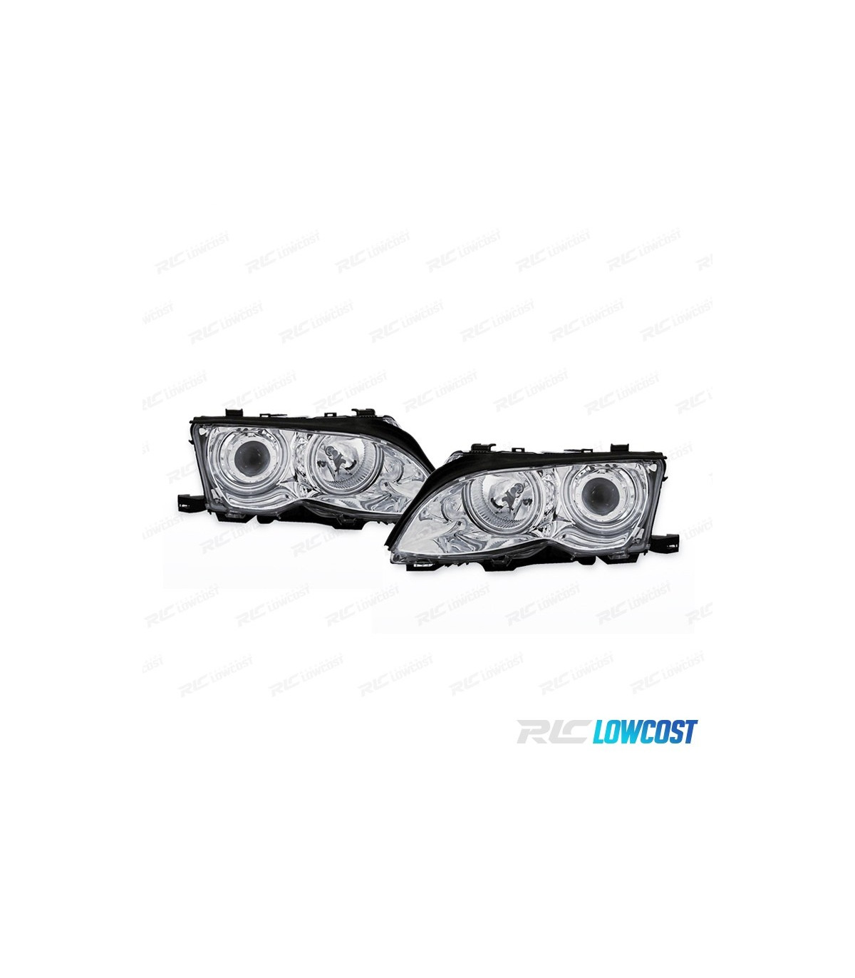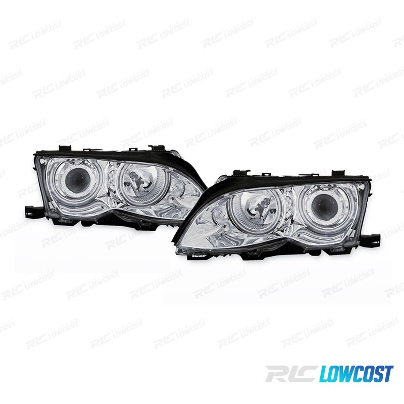 FARÓIS BMW E46 4P 01-05 OLHOS DE ANJO CCFL FUNDO CROMADO