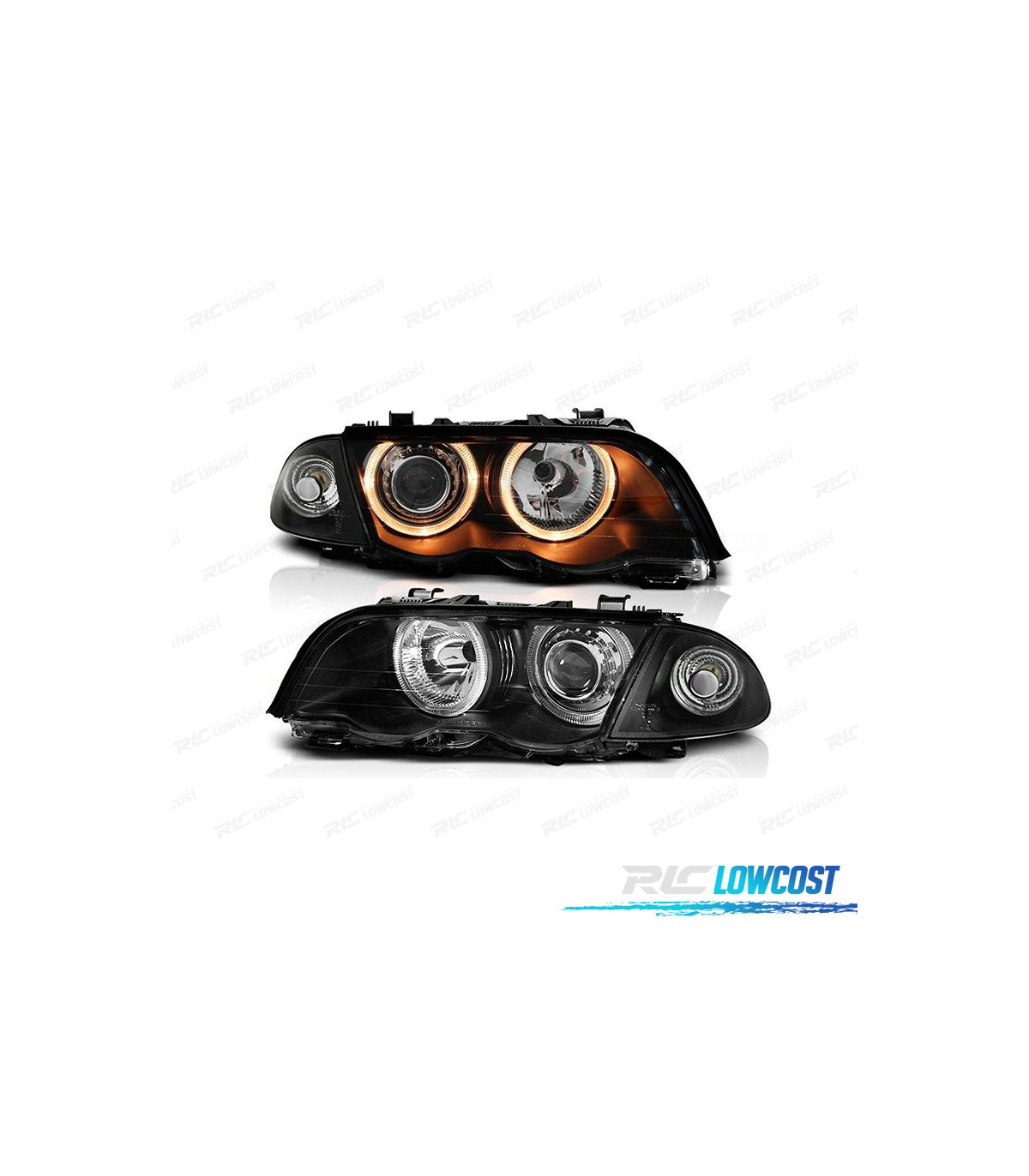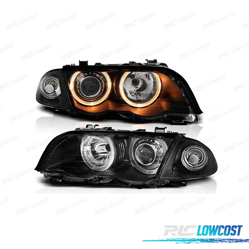FARÓIS BMW E46 BERLINA 98-01 ANGEL EYES FUNDO PRETO
