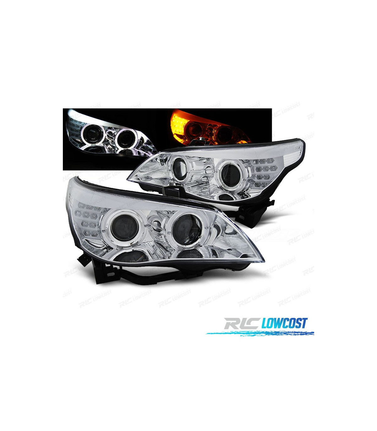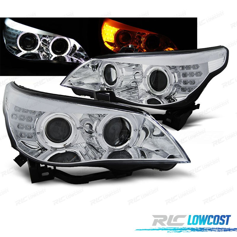 FARÓIS BMW E60 03-07 OLHOS DE ANJO CCFL FUNDO CROMADO