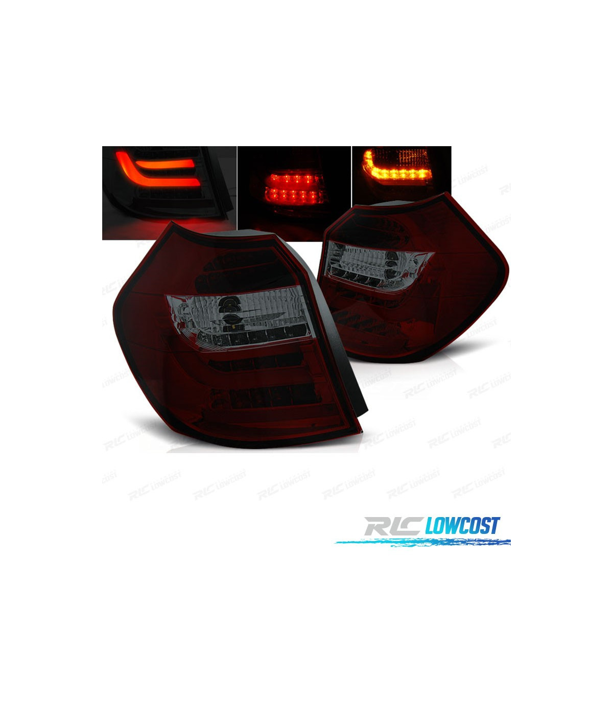 FAROLINS TRASEIROS BMW E81 E87 04-07 VERMELHAS FUMADAS BARRA DE LED