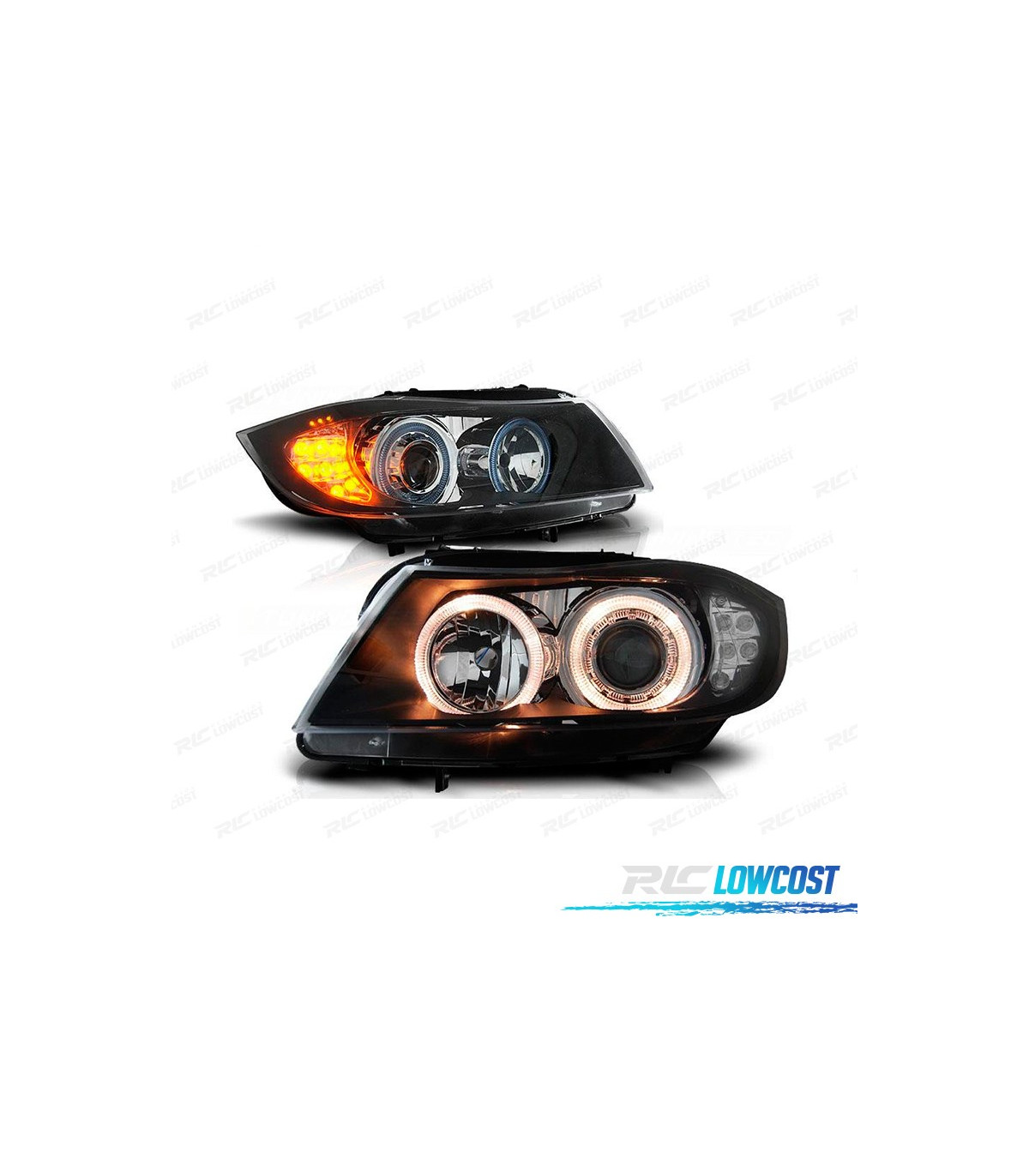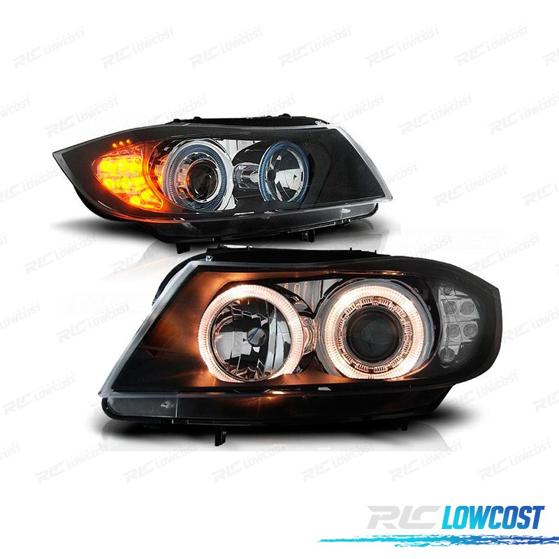 FARÓIS FRENTE ANGEL EYES LED BMW E90 E91FUNDO PRETO
