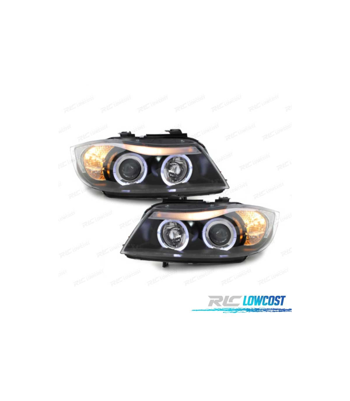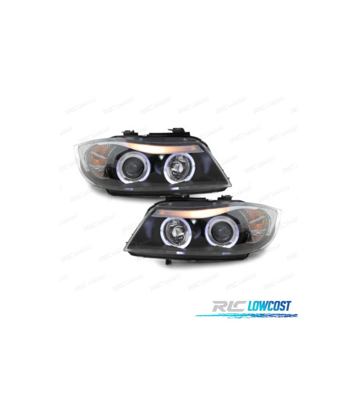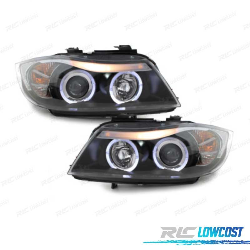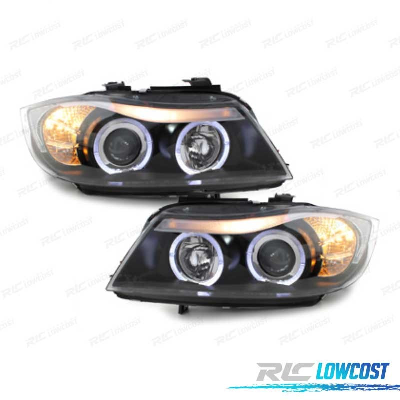 FARÓIS BMW E90 05-08 ANGEL EYES FUNDO PRETO