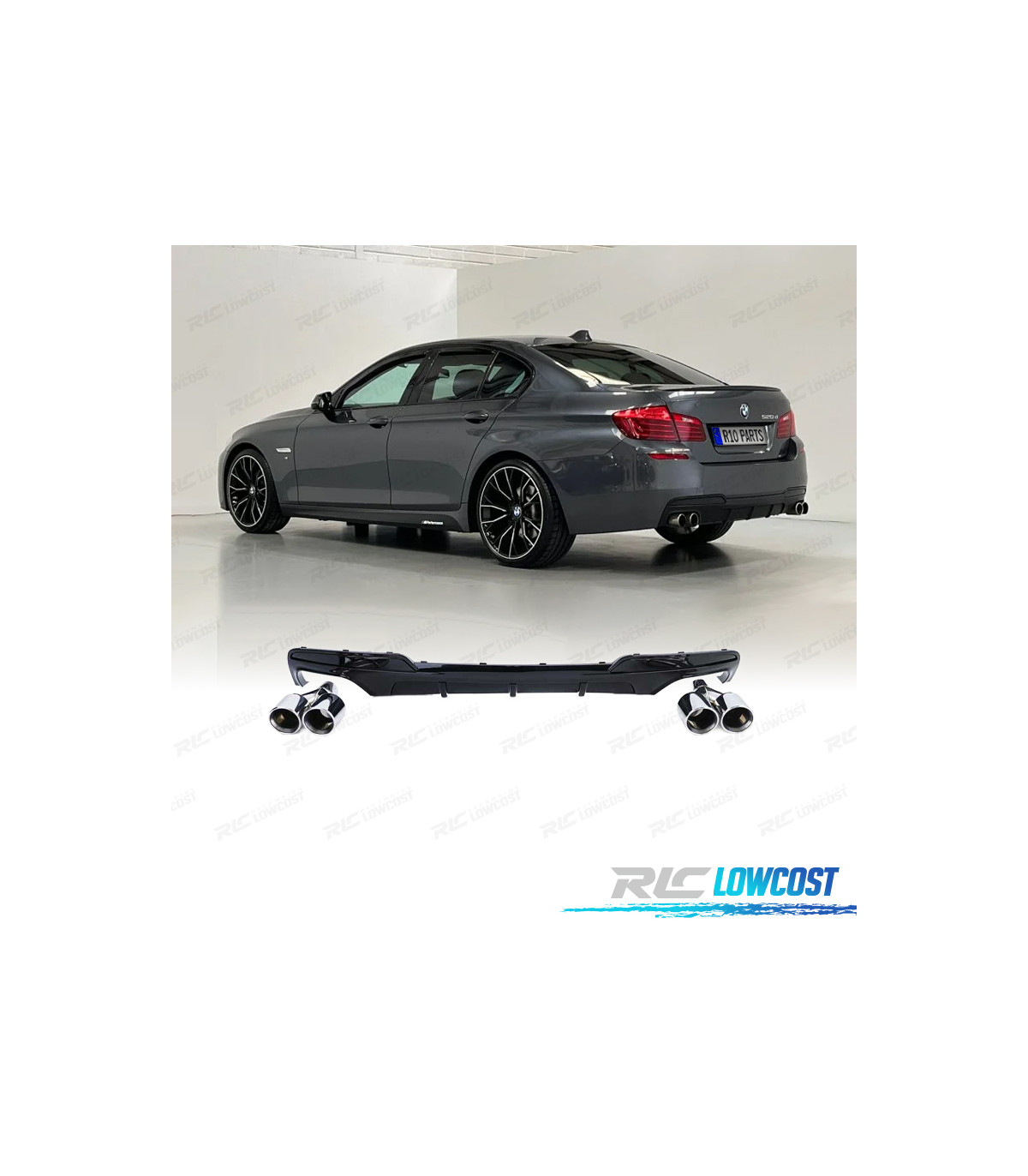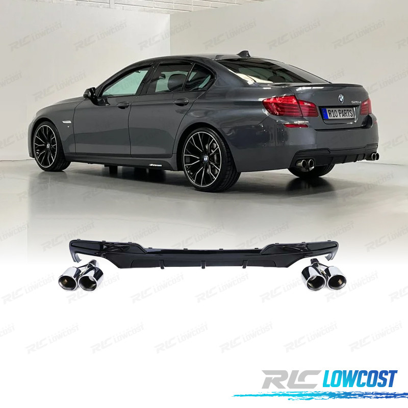 DIFUSOR BMW F10 F11 10-17 LOOK M PERFORMANCE PRETO BRILHANTE + PONTEIRAS ESCAPE CROMADAS