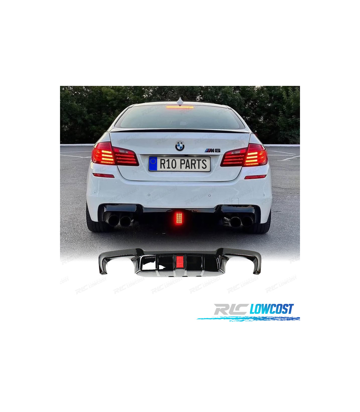 DIFUSOR BMW F10 11-17 LOOK M5 PRETO BRILHANTE COM LUZ DE TRAVAGEM