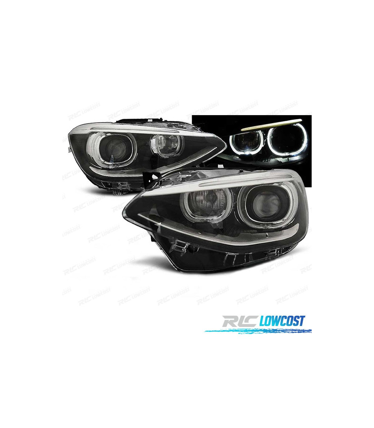 FAROIS BMW F20 F21 OLHOS DE ANGEL LED FUNDO PRETO