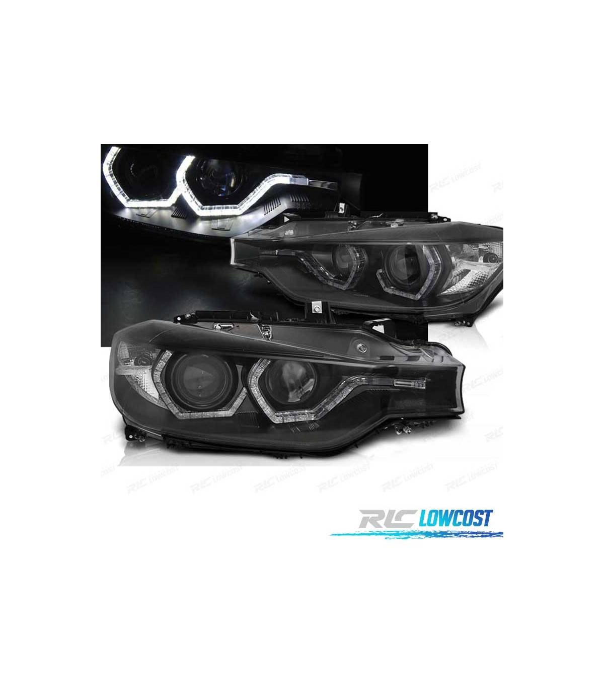 FARÓIS BMW F30 F31 11-15 XENON AFS ANGEL EYES LED DRL PRETO