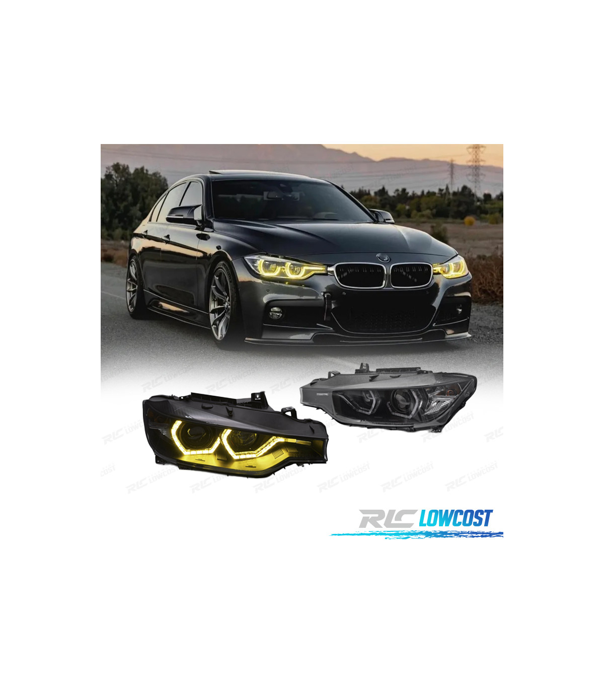 FARÓIS BMW F30 F31 11-15 ANGEL EYES LUZ DIURNA LED AMARELA