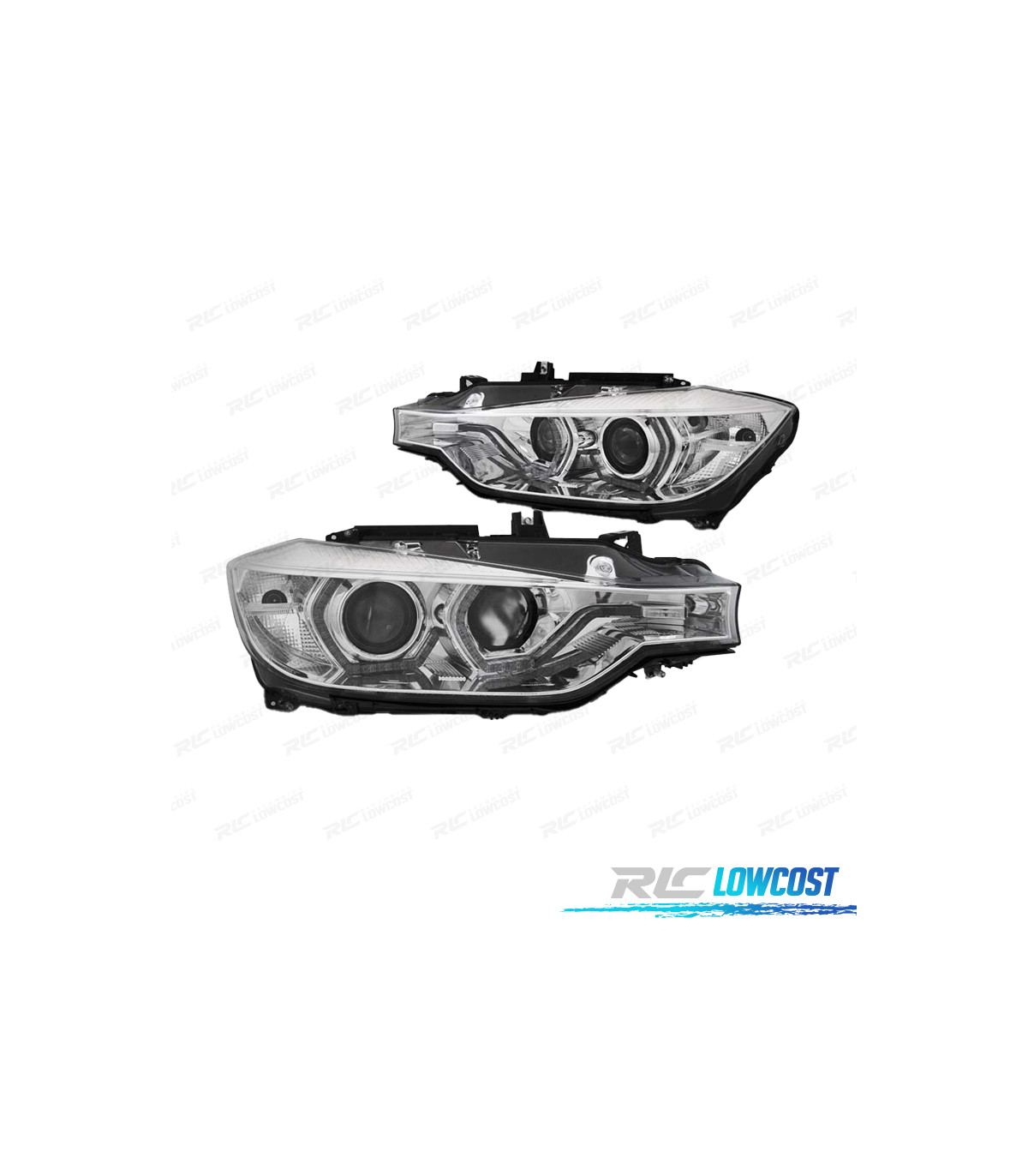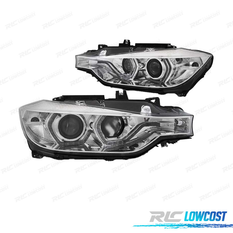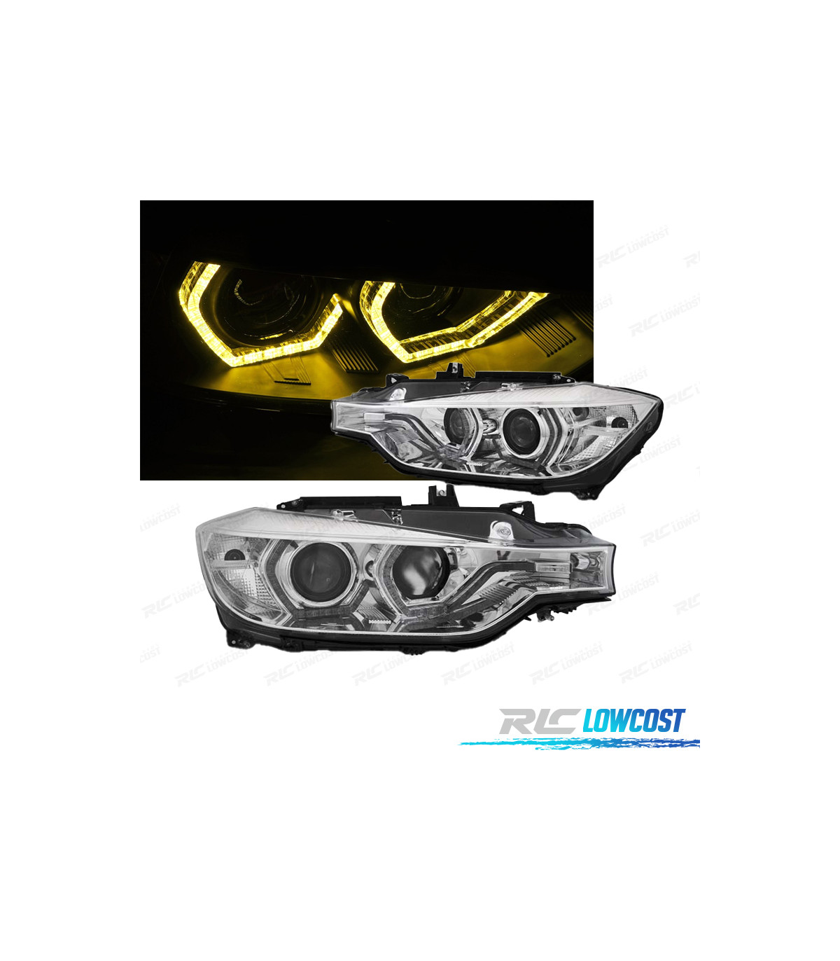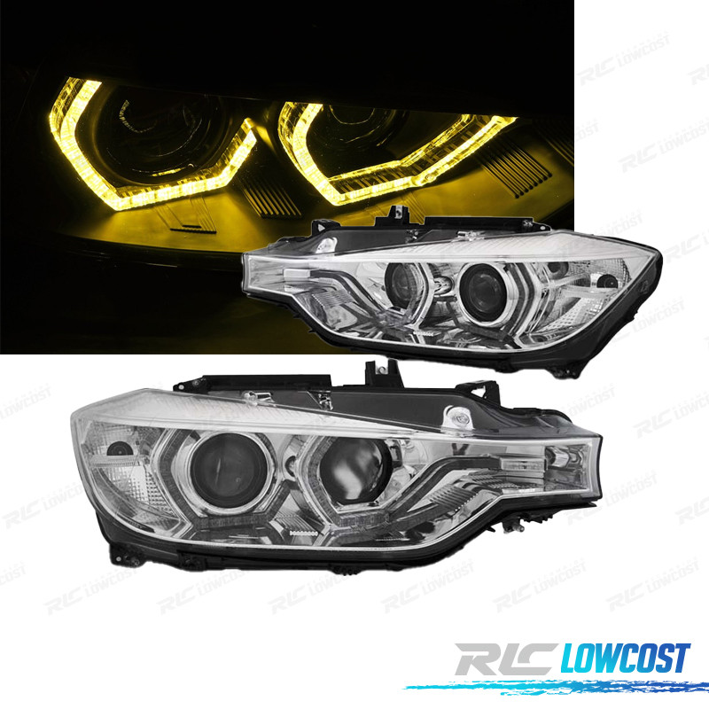 FARÓIS BMW F30 F31 11-15 ANGEL EYES LUZ DIURNA LED AMARELA FUNDO CROMADO
