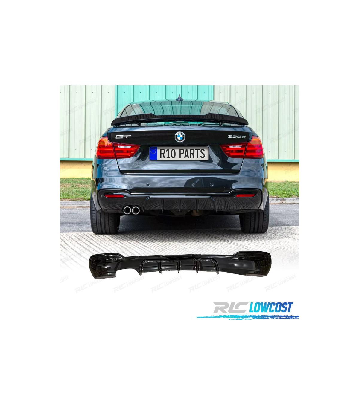 DIFUSOR TRASEIRO BMW F34 GT 13-19 LOOK M PERFORMANCE PRETO BRILHANTE 2 SAÍDAS ESQUERDA