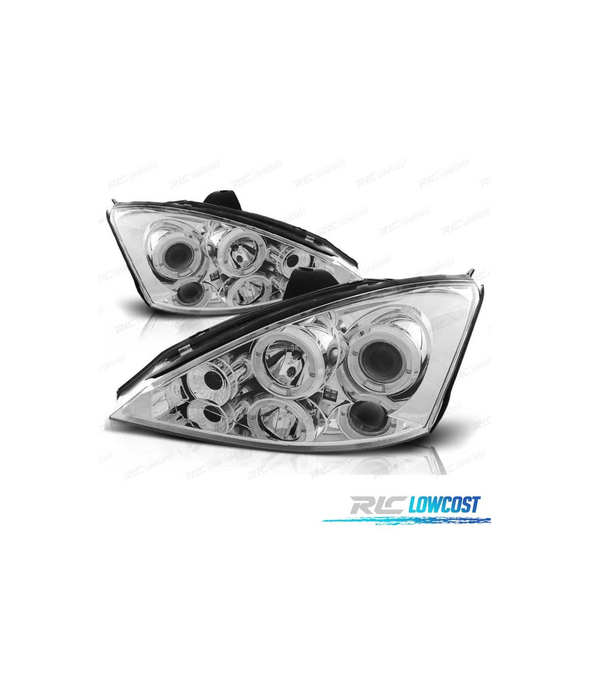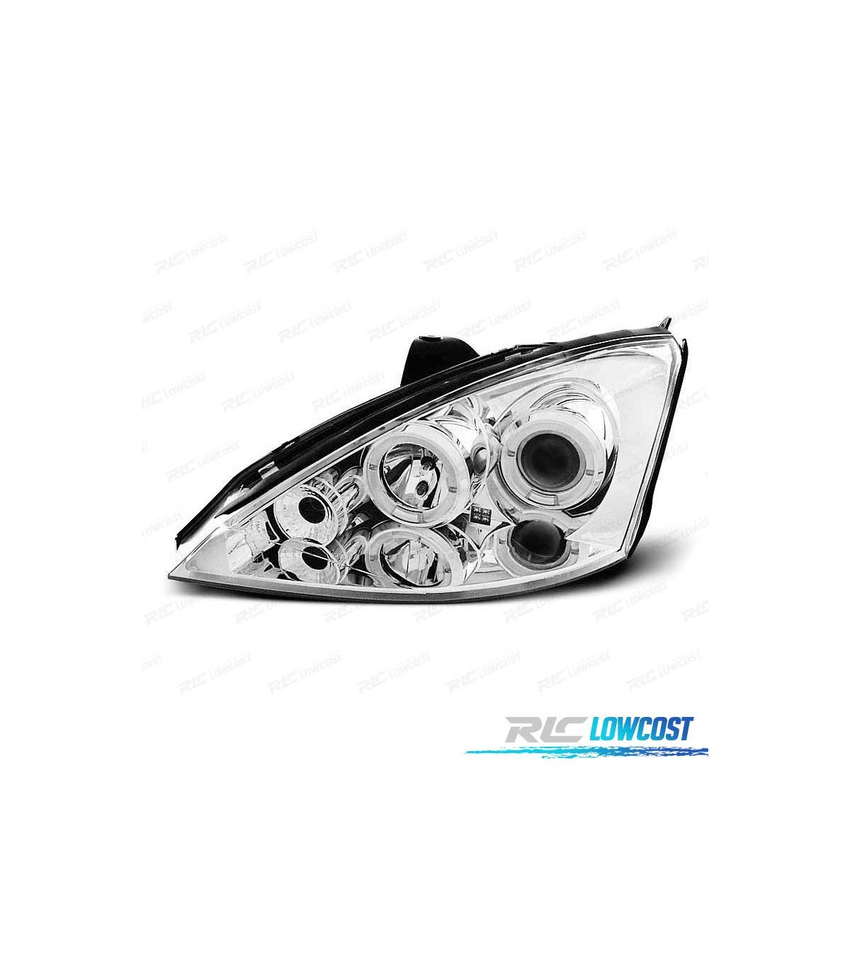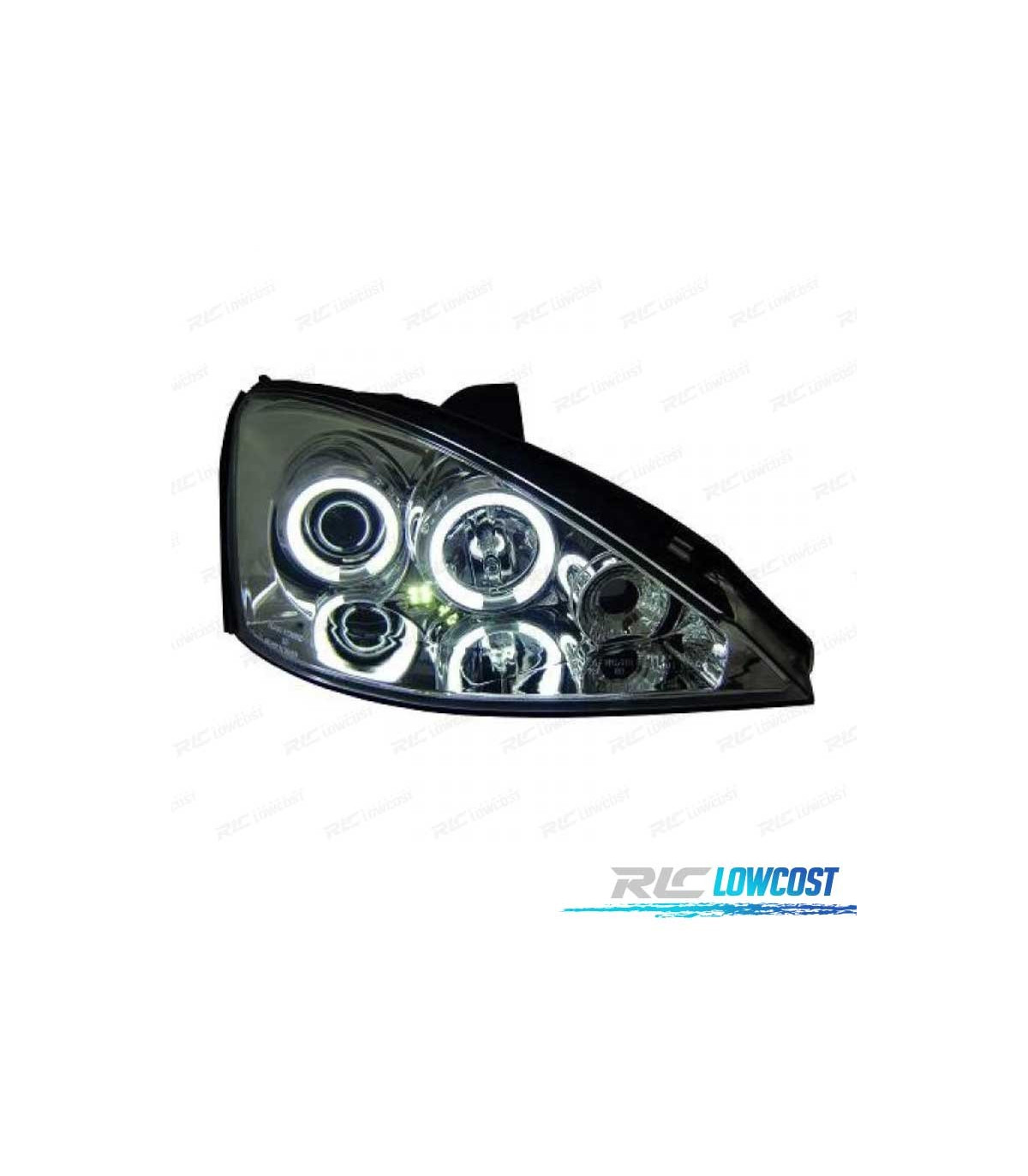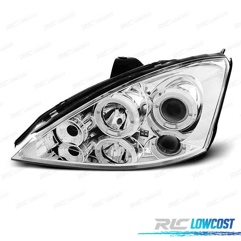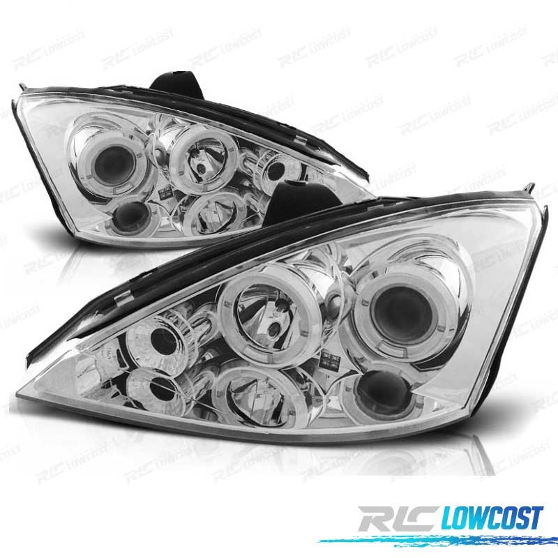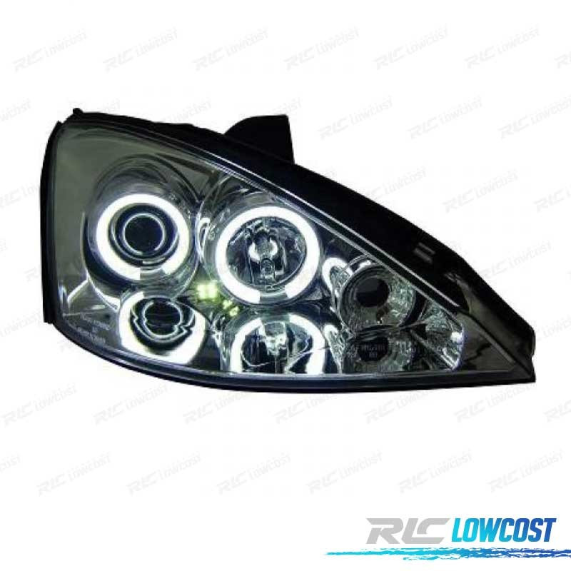 FARÓIS ANGEL EYES CCFL FORD FOCUS 98-03 FUNDO CROMADO