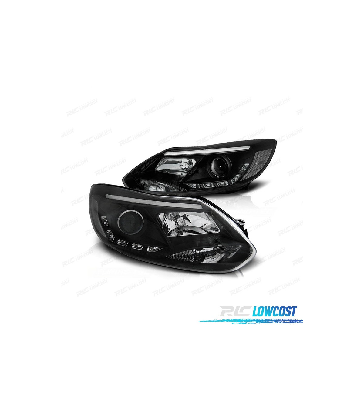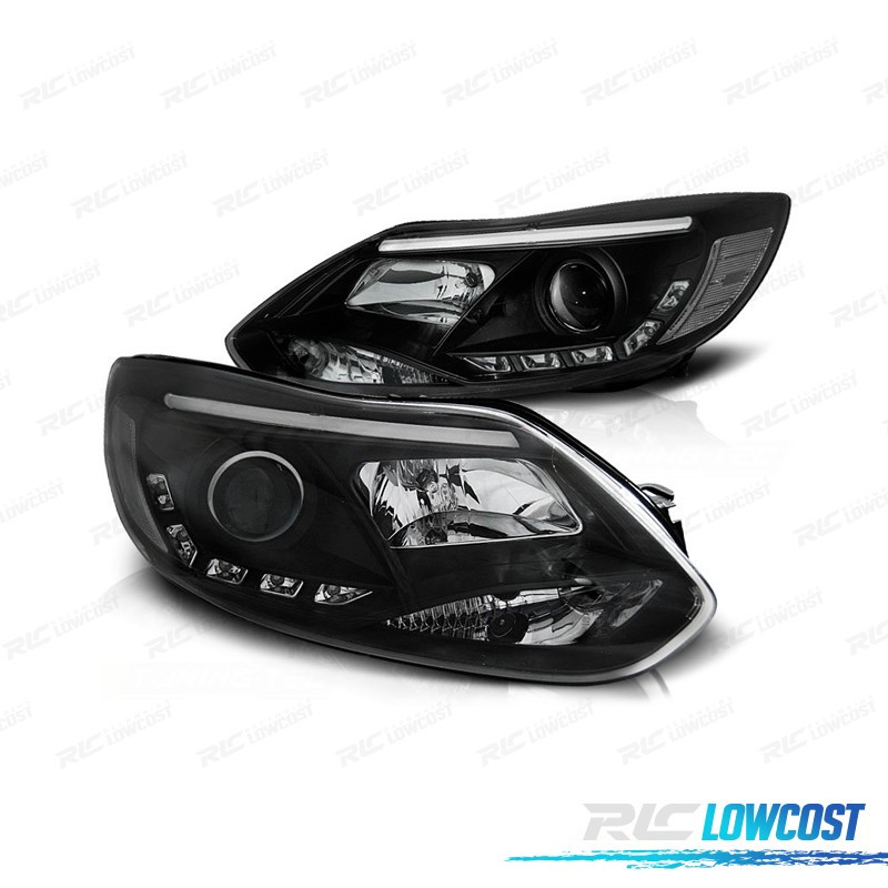 FARÓIS FRONTAIS FORD FOCUS 11-14 TUBE LIGHT + LED FUNDO PRETO