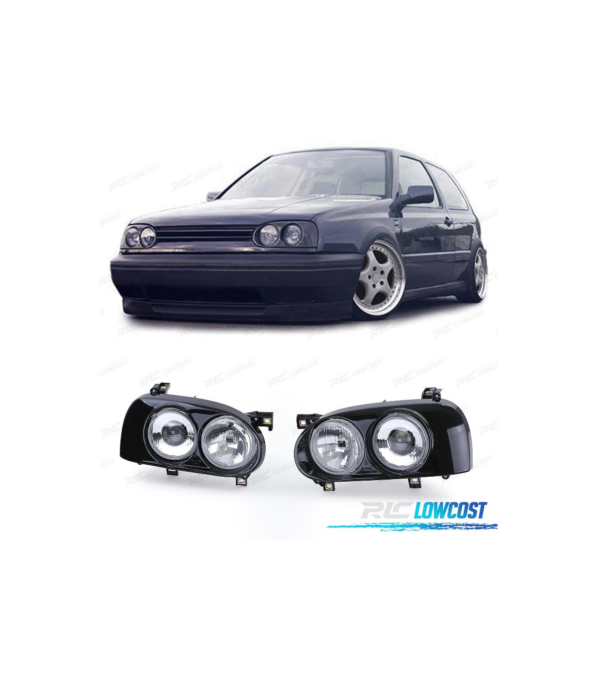 FARÓIS DUPLOS VOLKSWAGEN VW GOLF 3 91-97 PRETO
