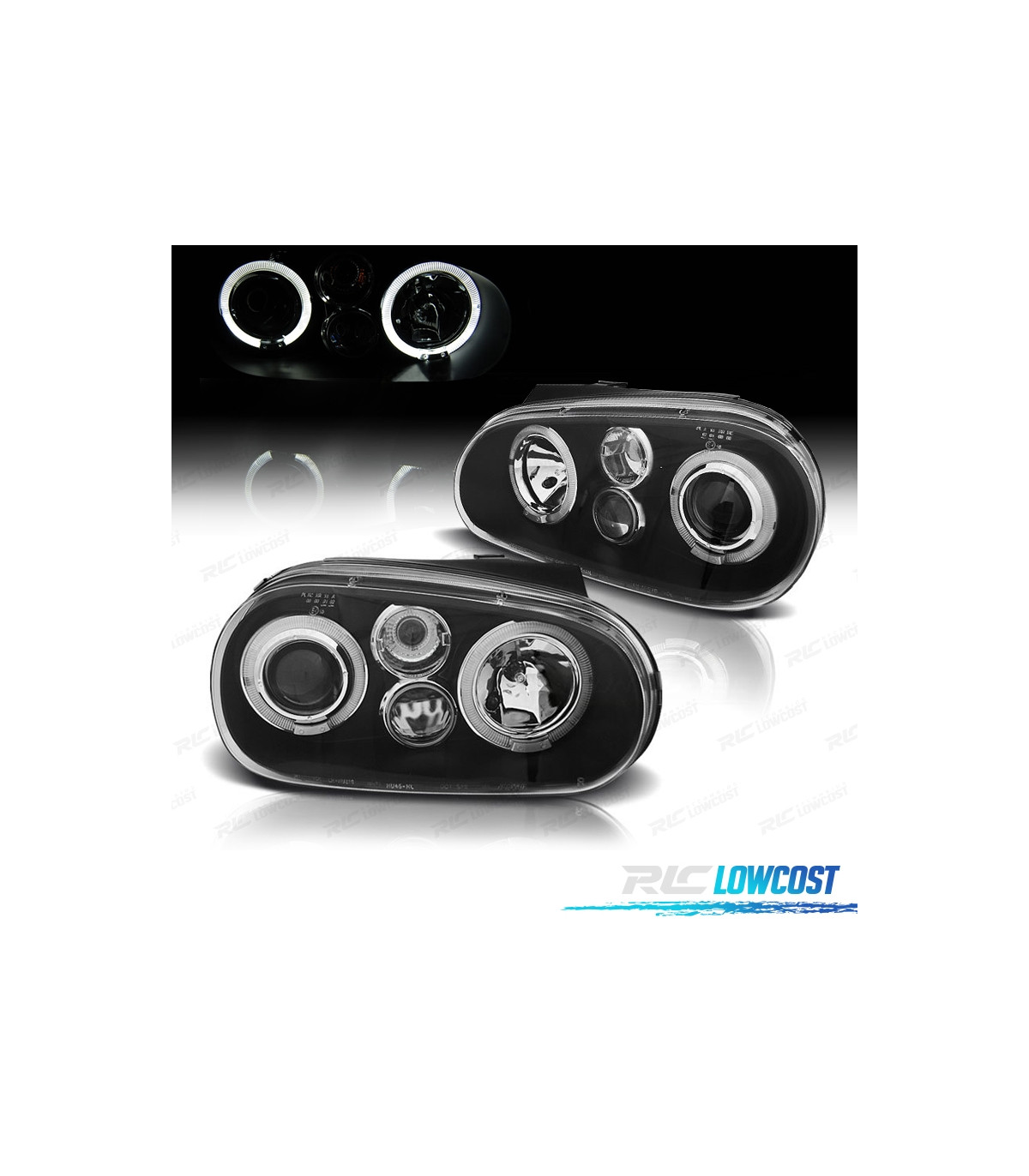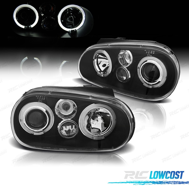 FARÓIS ANGEL EYES LED VOLKSWAGEN VW GOLF IV 4 LOOK R32 FUNDO PRETO