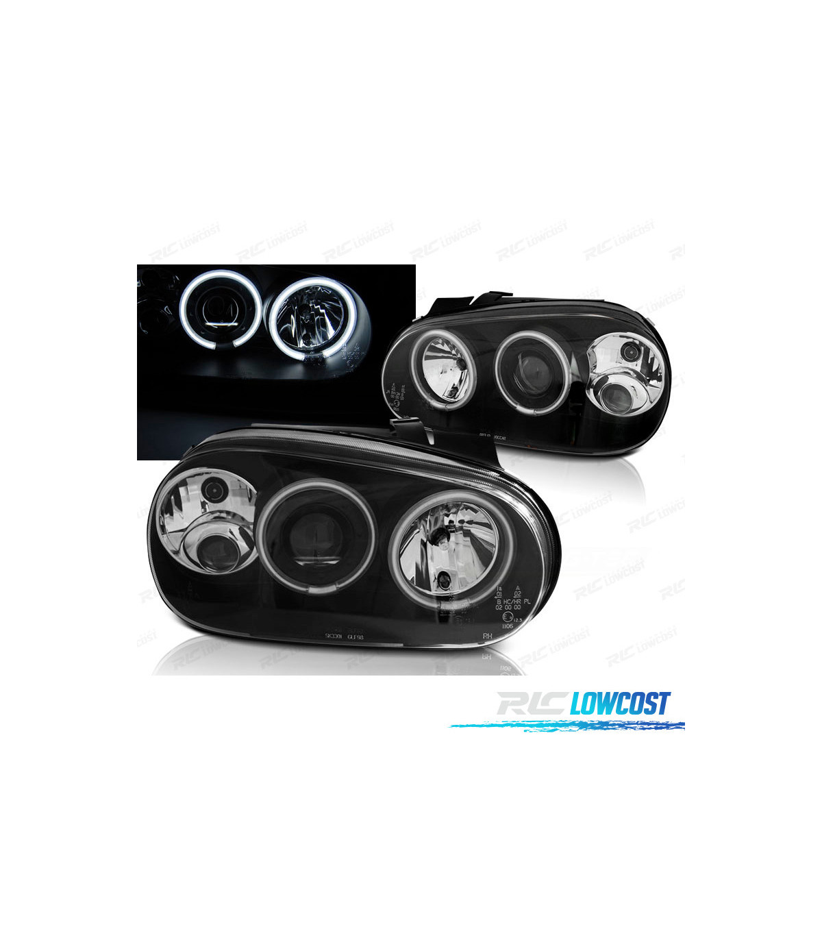 FARÓIS VOLKSWAGEN VW GOLF 4 ANGEL EYES NEGROS