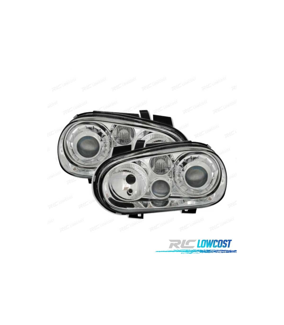 FARÓIS VOLKSWAGEN VW GOLF 4 97-03 LOOK R32 FUNDO CROMADO