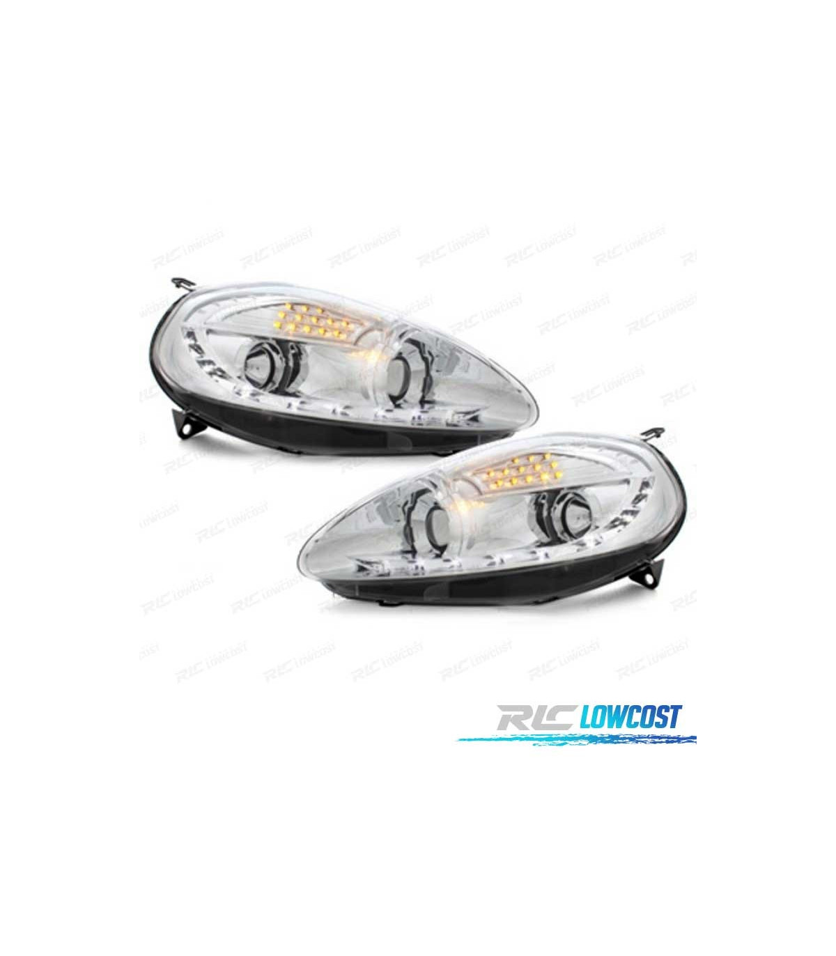 FARÓIS FIAT GRANDE PUNTO 05-08 LUZ DIURNA FUNDO CROMADO