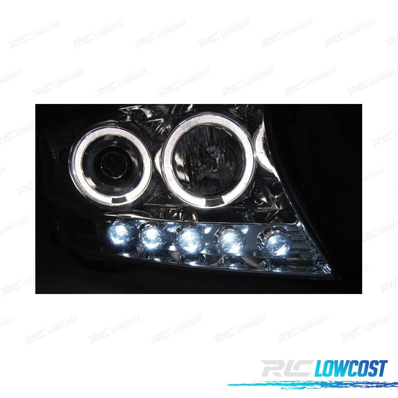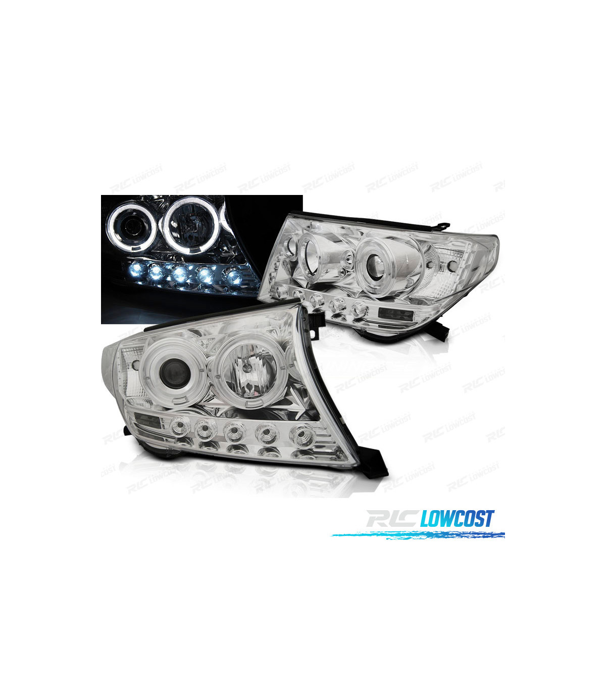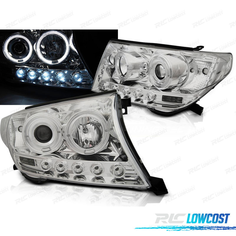 FARÓIS TOYOTA LAND CRUISER FJ200 07-12 ANGEL EYES + LEDS CROMADO
