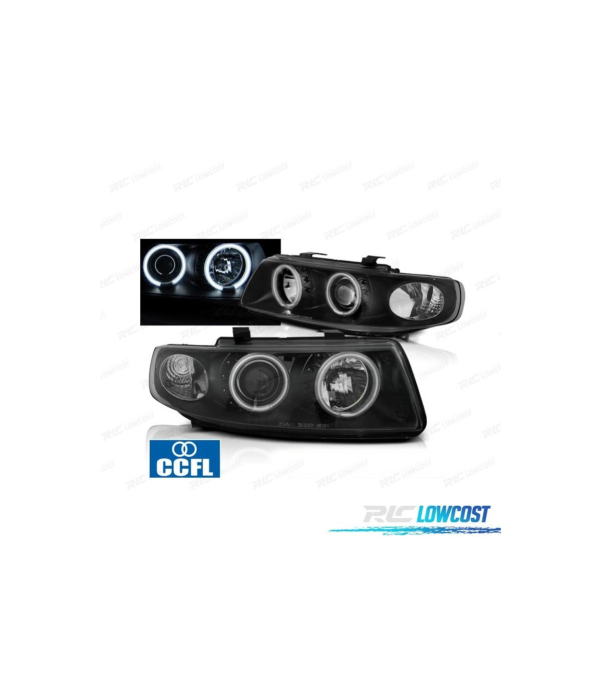 FARÓIS SEAT LEON TOLEDO 1M 99-05 ANGEL EYES CCFL FUNDO NEGRO