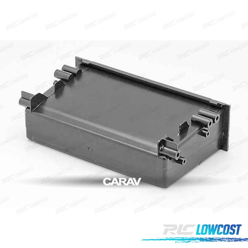 Adaptador de compartimento que converte a abertura para um compartimento de adaptação Universal 1-DIN, mantendo o visual do tablier.