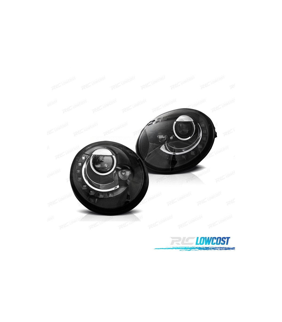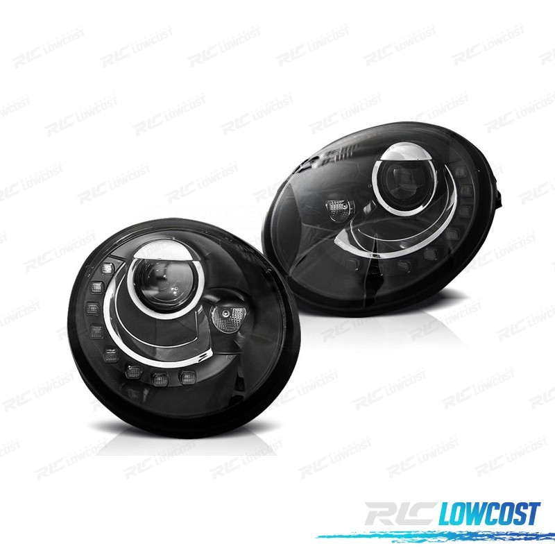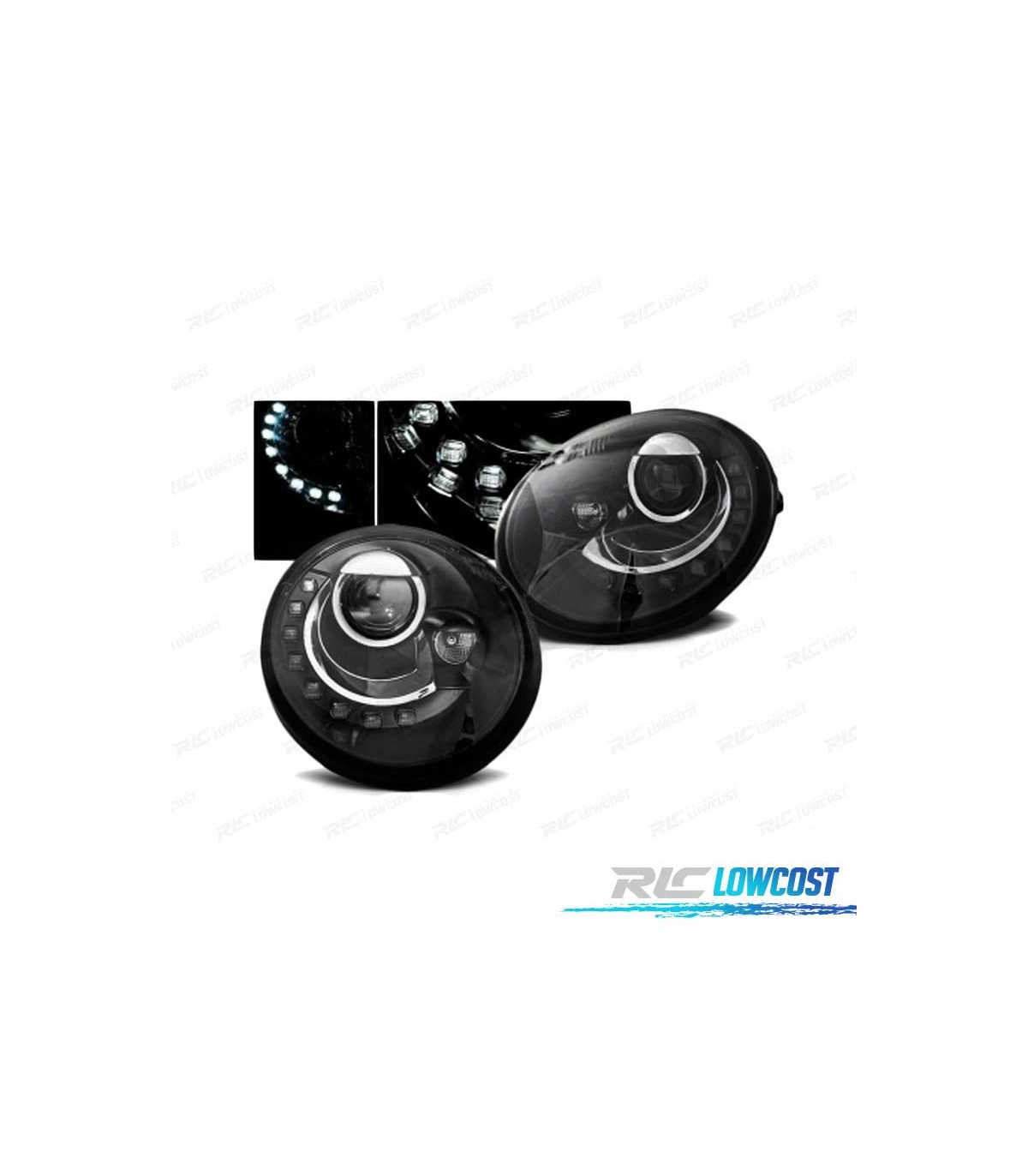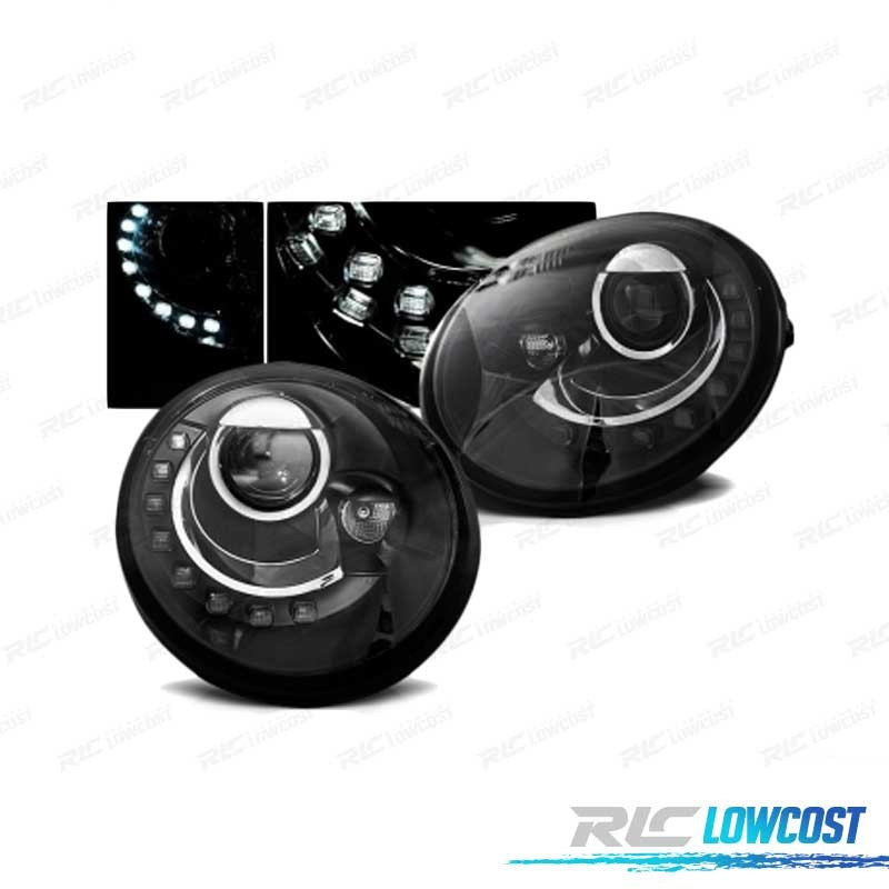 FARÓIS LUZ DIURNA LED VOLKSWAGEN VW BEETLE 95-05 FUNDO PRETO