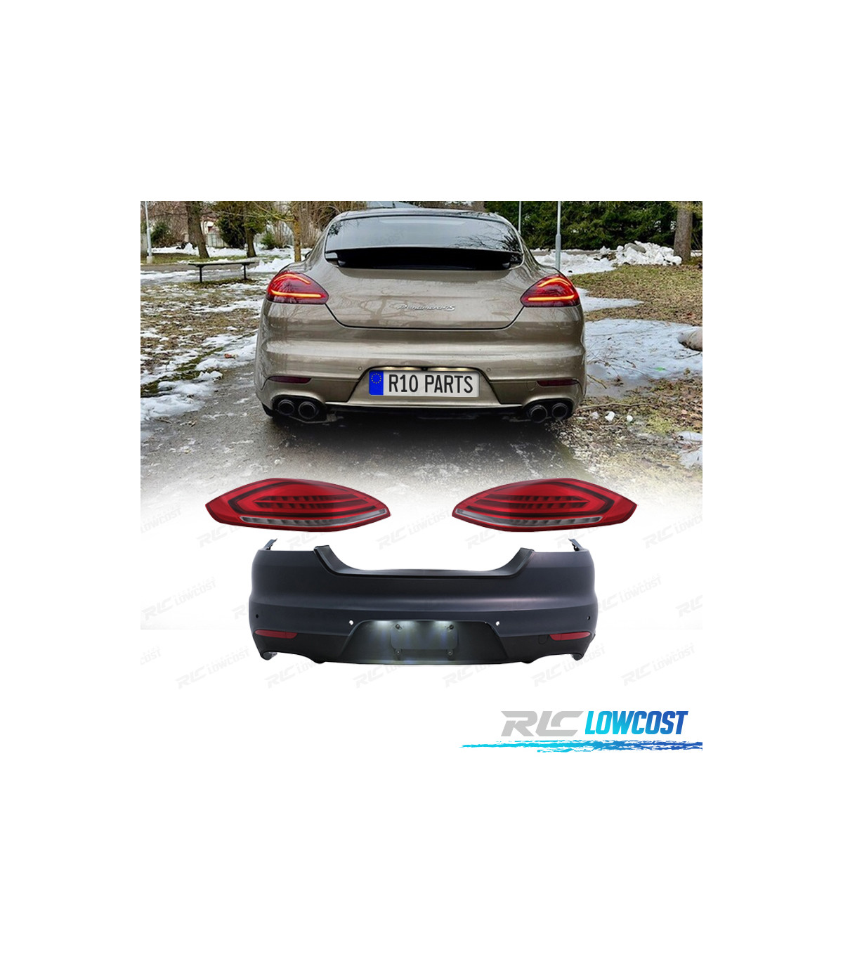 PARACHOQUES TRASEIRO PORSCHE PANAMERA 09-13 LOOK TURBO 971 + FAROLINS LED
