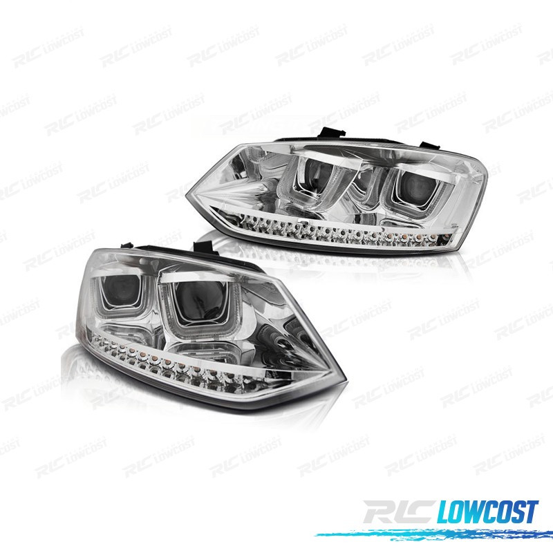 FAROIS FRONTAIS VOLKSWAGEN VW POLO 6R 09-14 LUZ DIURNA DINAMIC FUNDO CROMADO