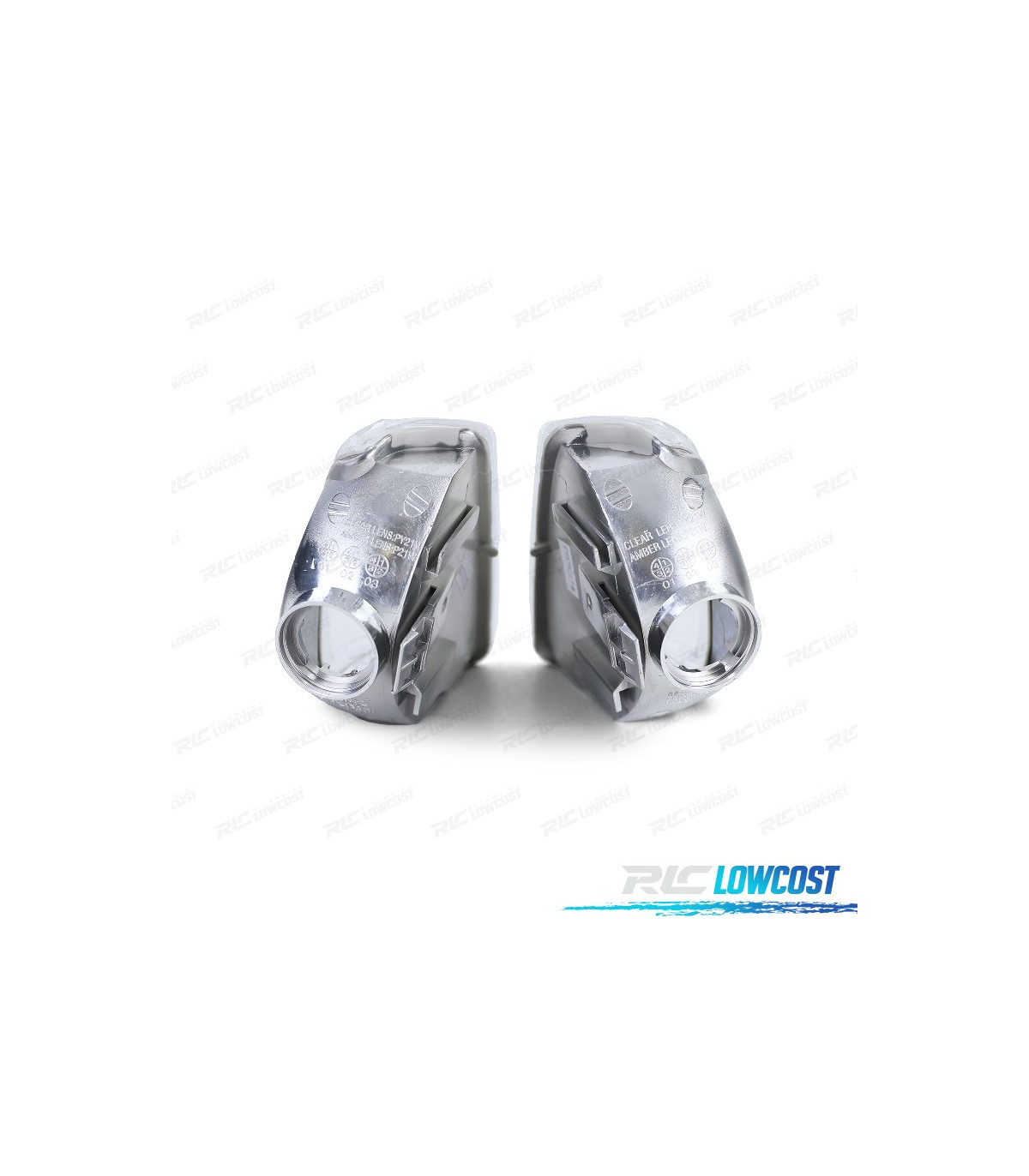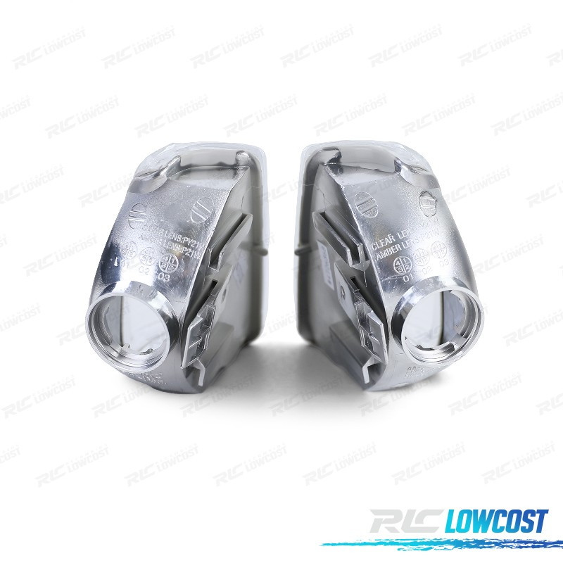 Homologação Europeia. Piscas laterais com E-Mark (Certificado Europeu) gravado no vidro.