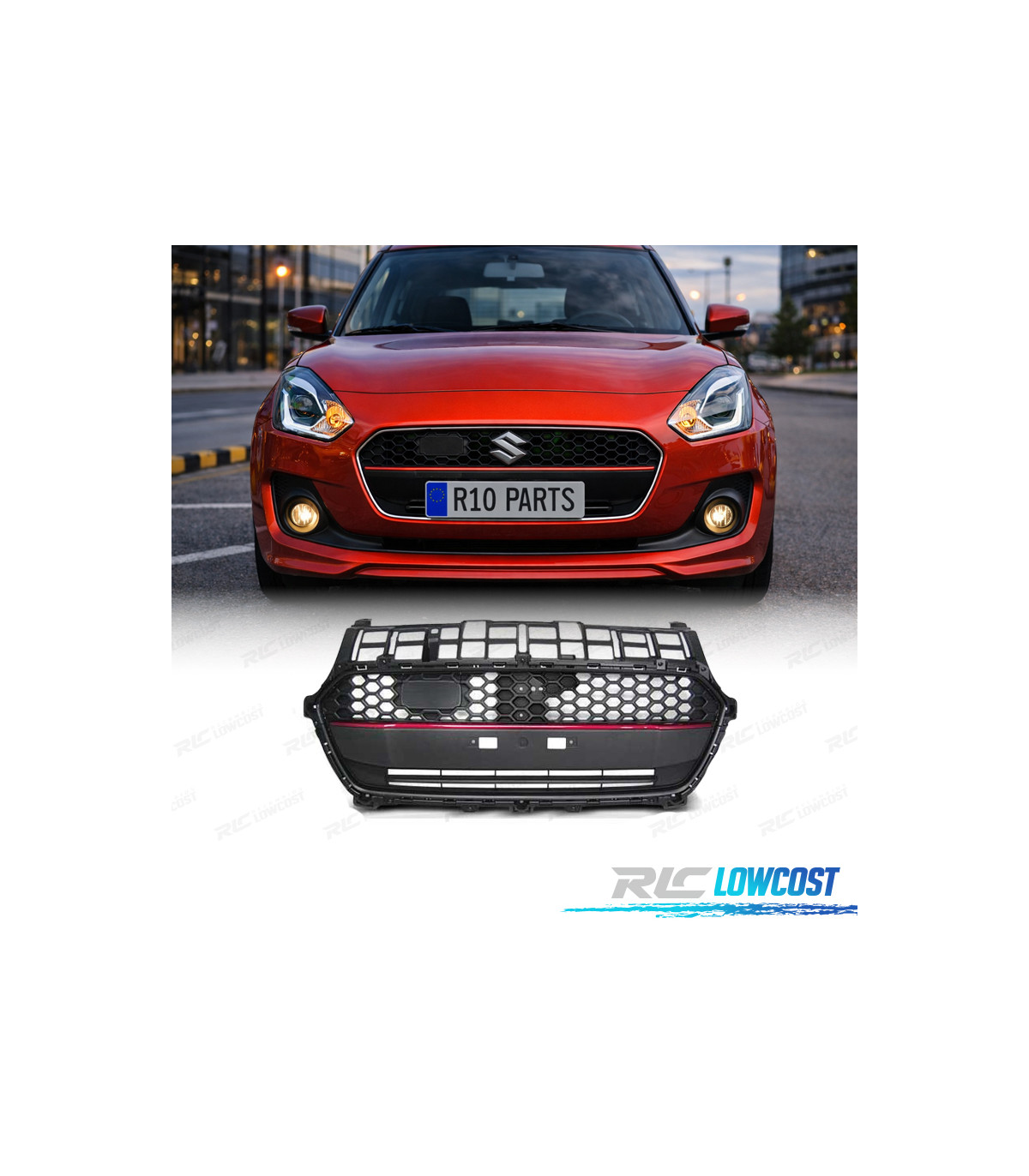 GRELHA FRONTAL SUZUKI SWIFT VI 17-20 LOOK SPORT LINE PRETO VERMELHO